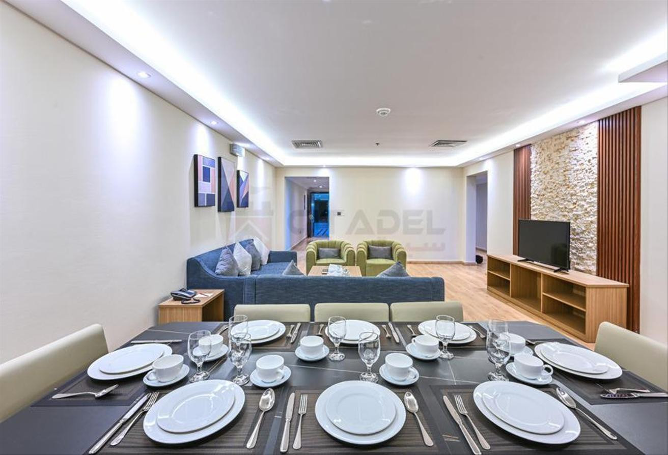 Fully Furnished Hotel Apartment: 3Bedrooms with 2.5 Bathrooms, Hall, Closed Kitchen.
