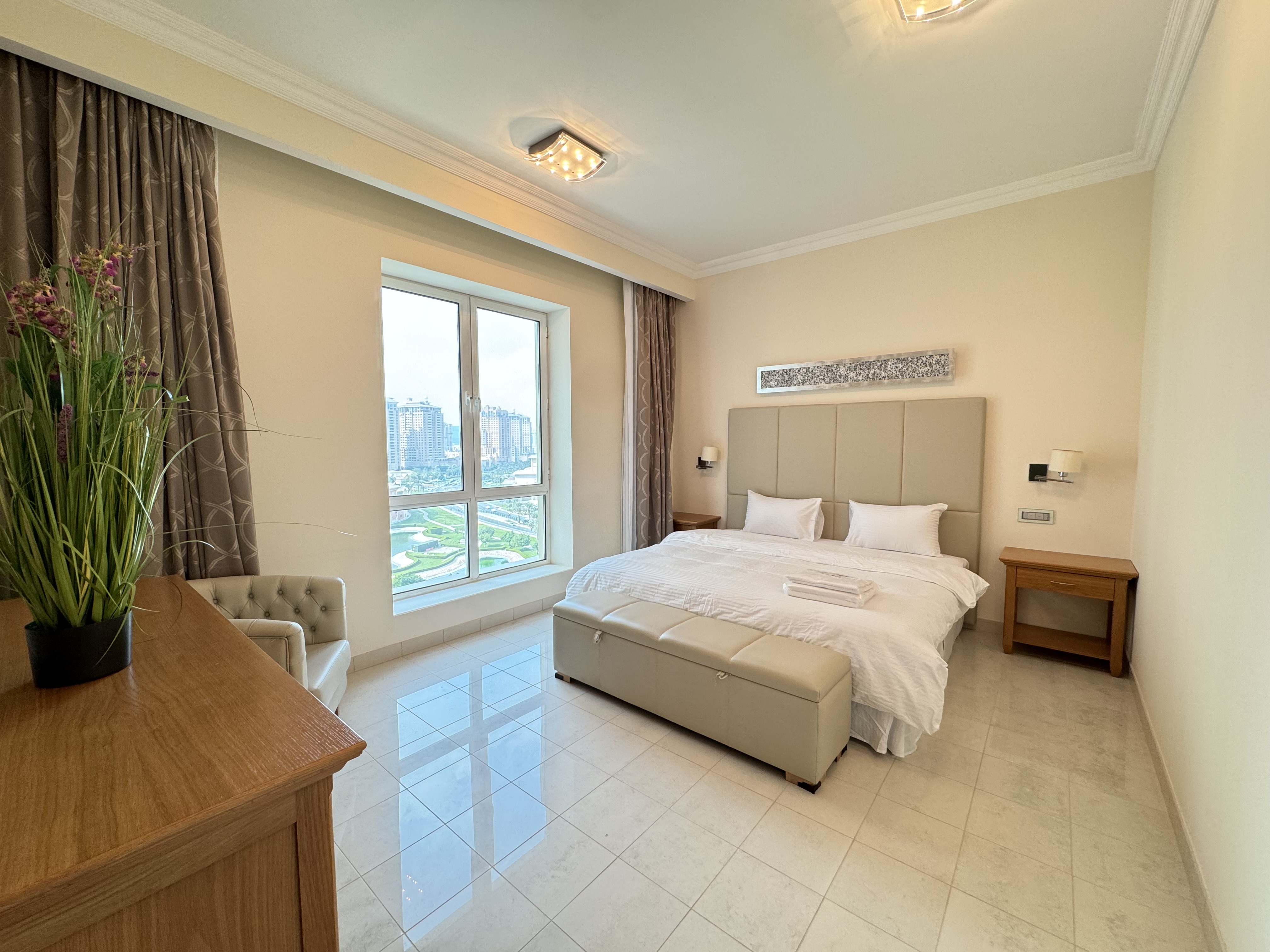 This unit is counted as an excellent fully - Furnished 2BR apartment with a price of 13,000 QAR including the bills