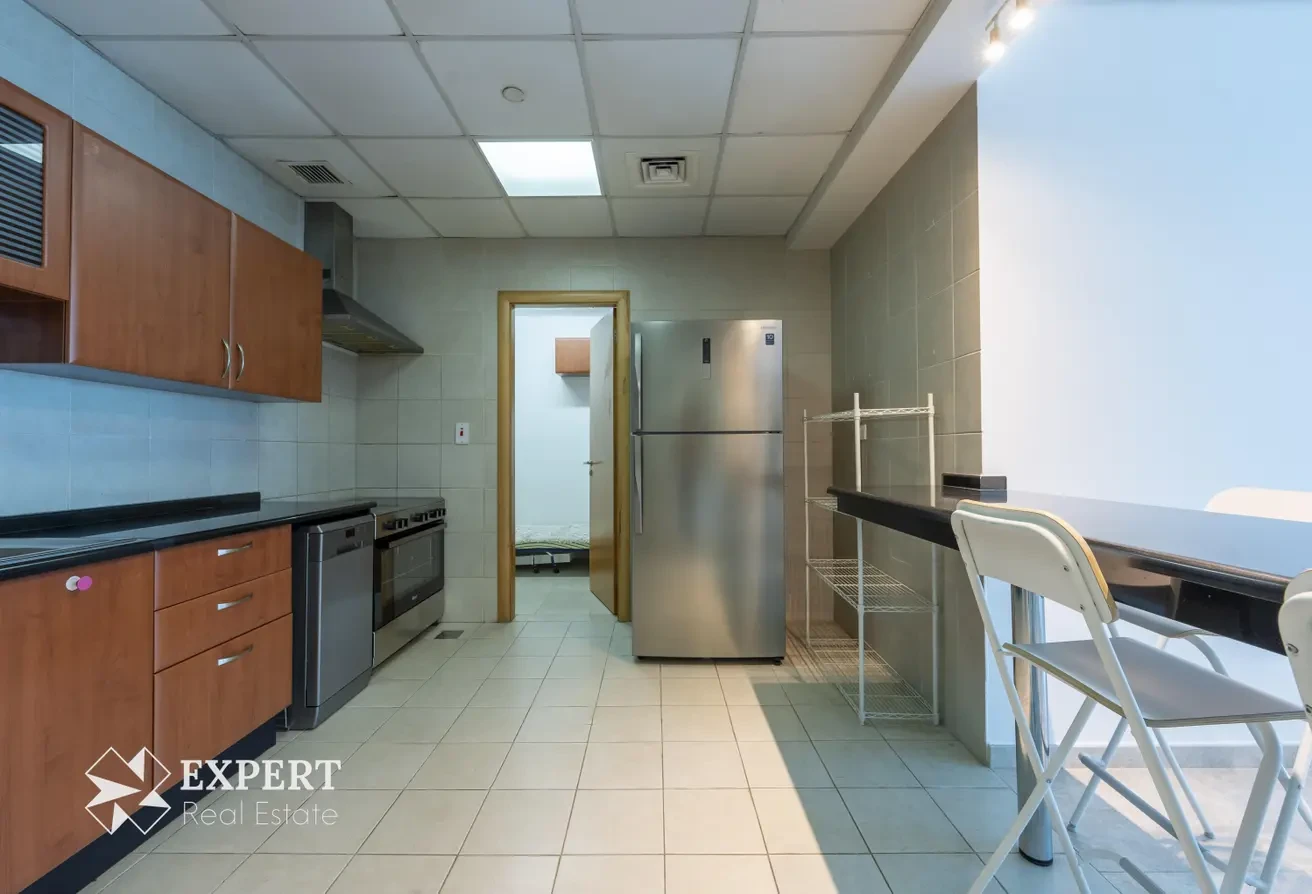 The apartment showcases a modern and well-equipped kitchen, complete with top-of-the-line and ample storage space. Whether your a culinary enthusiast or simply enjoy cooking, this kitchen provides the perfect setting to create gourmet meals and culinary delights.