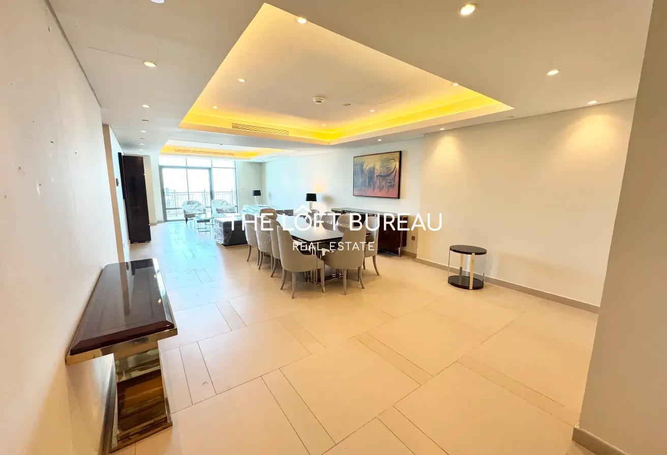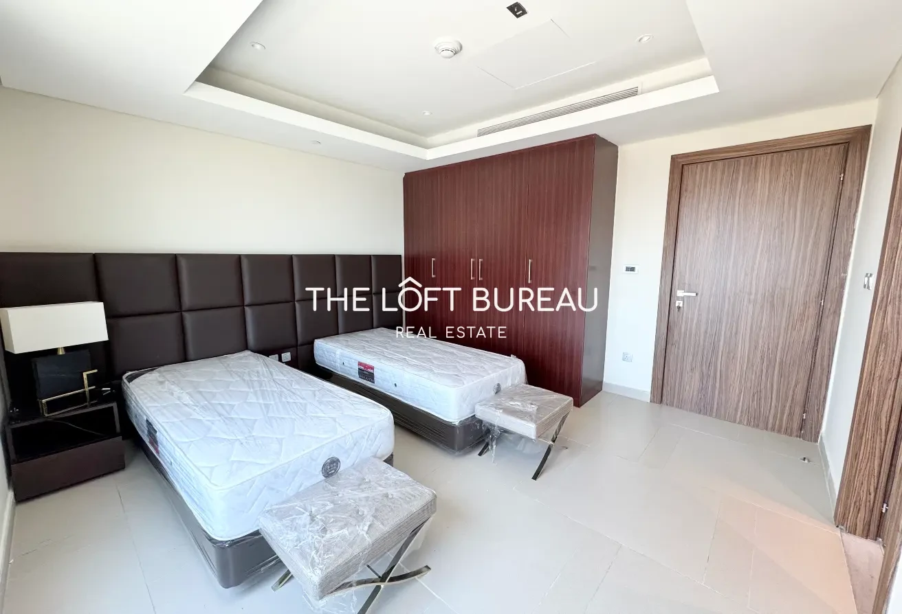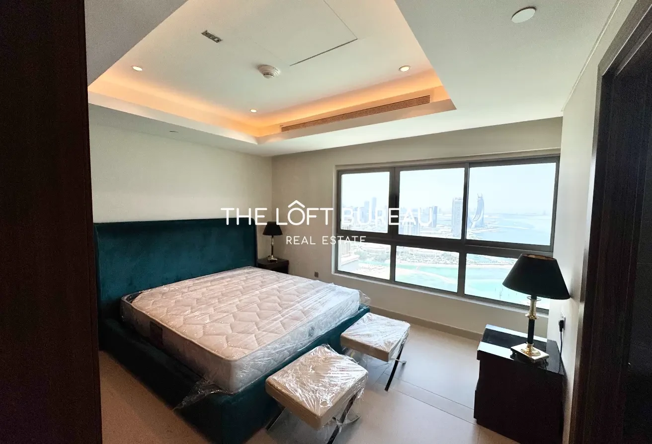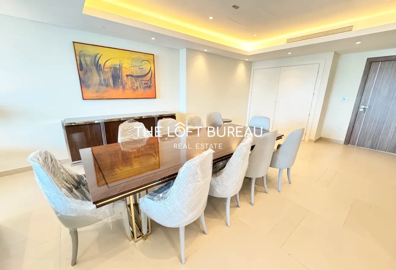 The Loft Bureau is pleased to offer this fully furnished 3-bedroom apartment with a maid’s room in the prestigious Abraj Bay, located in The Pearl — one of Doha’s most exclusive waterfront communities.