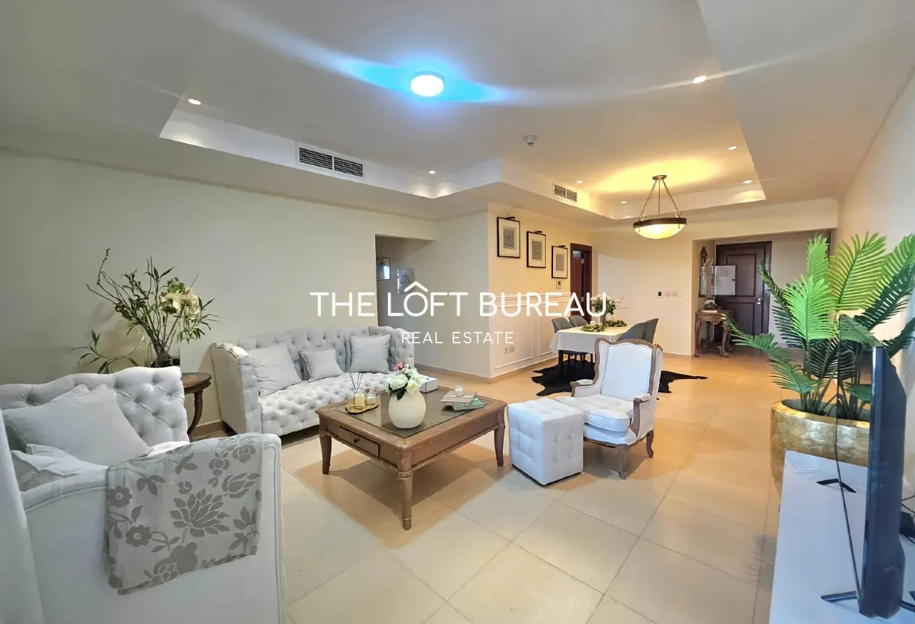 Step into refined coastal living with this beautifully appointed 2-bedroom apartment located in Tower 5 of Porto Arabia. Spanning 138 sqm, this fully furnished residence offers a spacious layout, elegant interiors, and serene marina views—perfect for tenants seeking both style and convenience in The Pearl–Qatar.