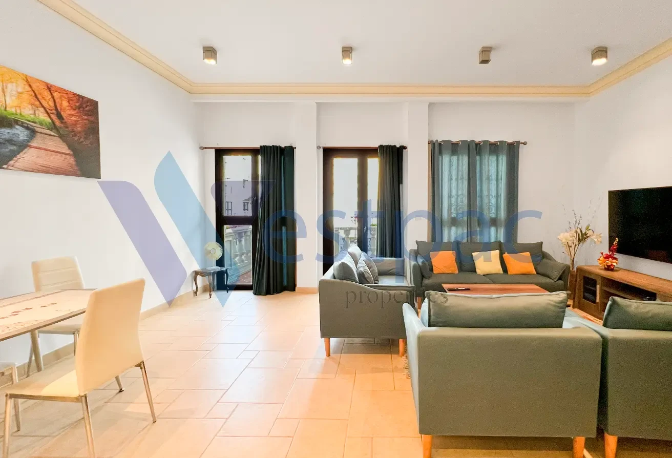 This fully furnished 1BHK apartment, located in the charming Qanat Quartier at The Pearl, offers a perfect blend of comfort and elegance. Featuring a spacious balcony, the home provides a serene setting to relax and enjoy the picturesque surroundings. With its bright, open layout and thoughtful design, it’s ideal for both everyday living and entertaining. Just steps away from vibrant dining spots, boutique shops, and scenic canals, this residence puts the best of The Pearl right at your doorstep.