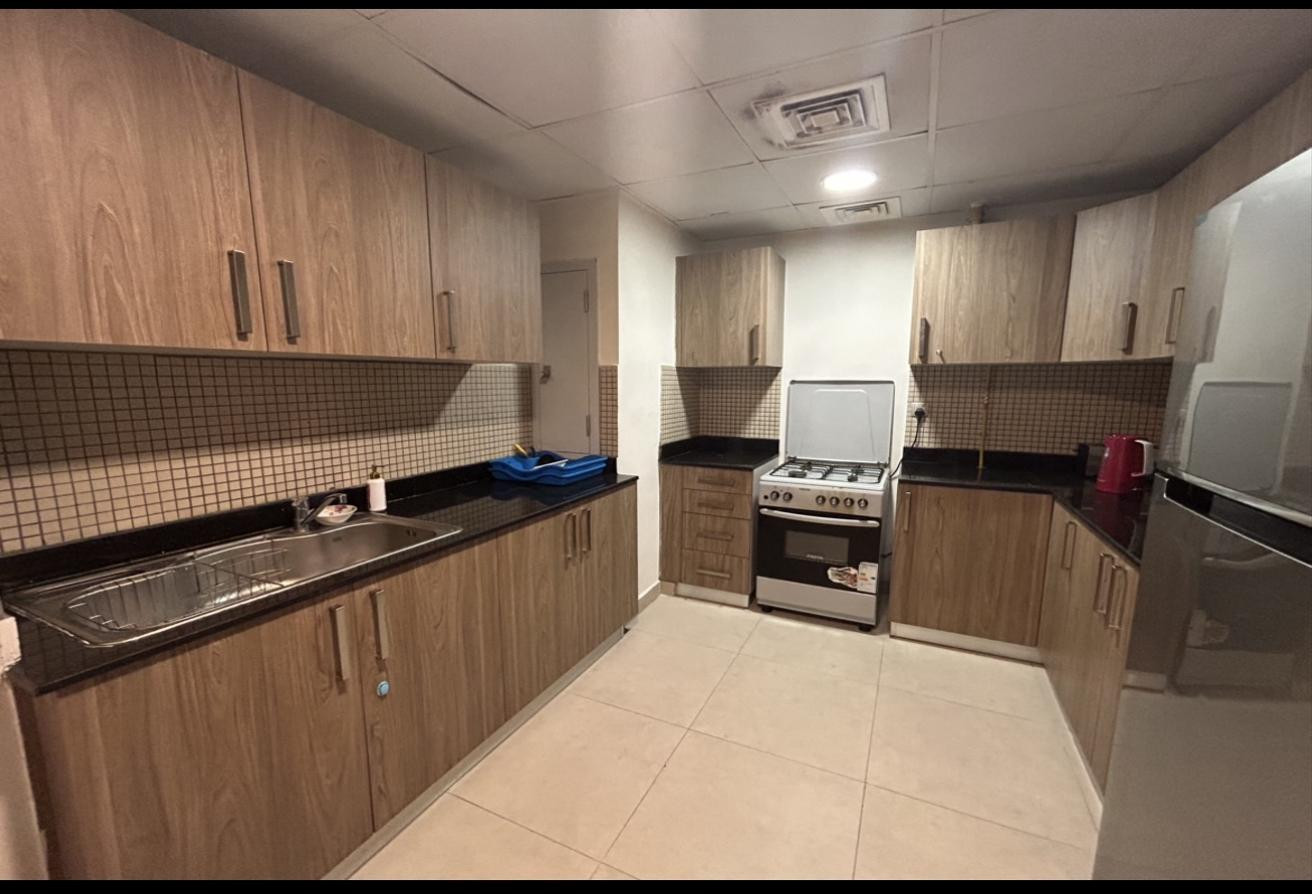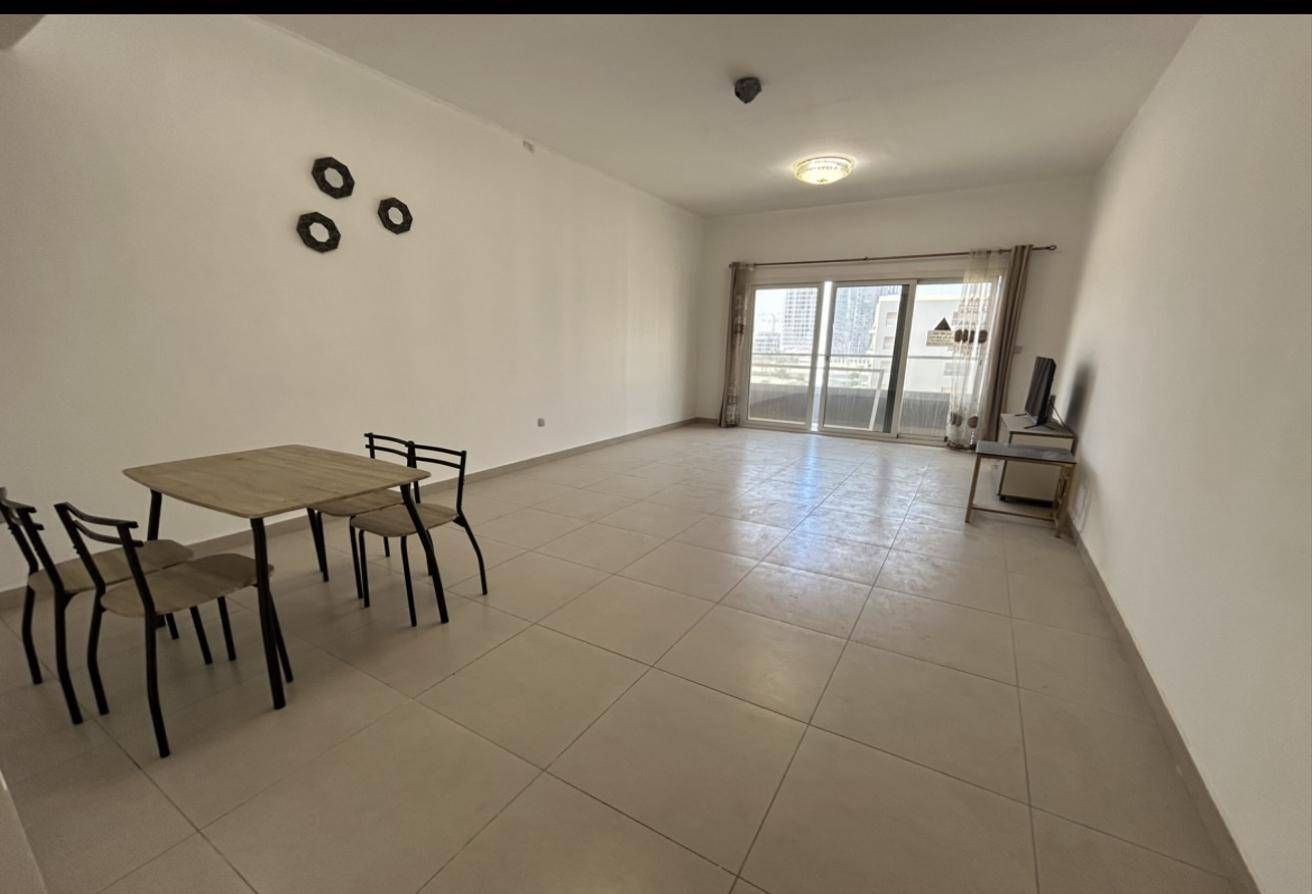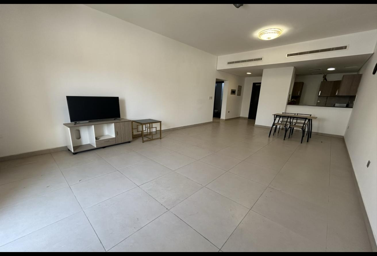 The home boasts a generous living and dining area with balcony access, a fully fitted kitchen with appliances, and large windows providing natural light. Residents will also enjoy dedicated parking, 24/7 security, and access to building facilities.