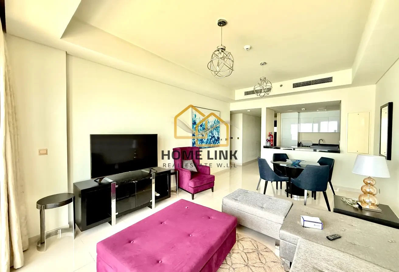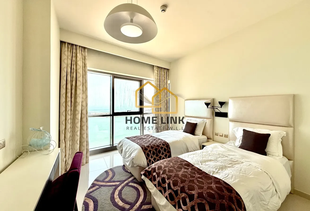 Home Link Real Estate offers this waterfront apartment for rent located in the heart of Doha. This tower hosting a luxury serviced apartments raises the bar of contemporary seaside living in Lusail City. Large windows offer panoramic views of the water in these well-designed homes, with exceptional fittings and furnishings that fit with the architectural theme. The podium hosts wellness facilities, with a large pool bordered by palm trees and a podium-level restaurant serving global flavours round the clock. Any hour of the day, you’ll be welcomed home in a grand lobby with reception and concierge.