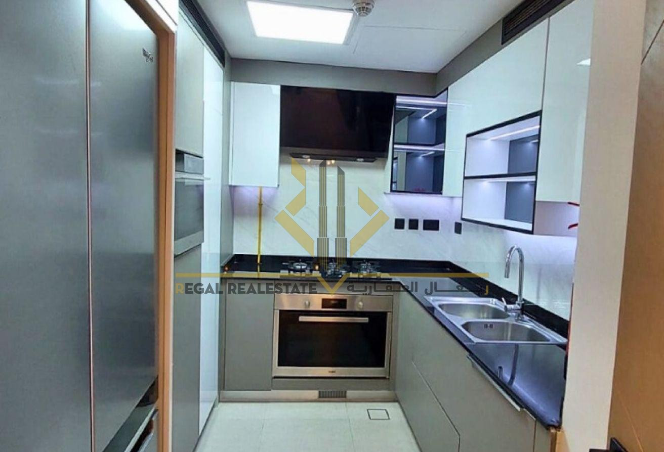 مطبخ مجهز بالكامل بأجهزة حديثة وأنيقة