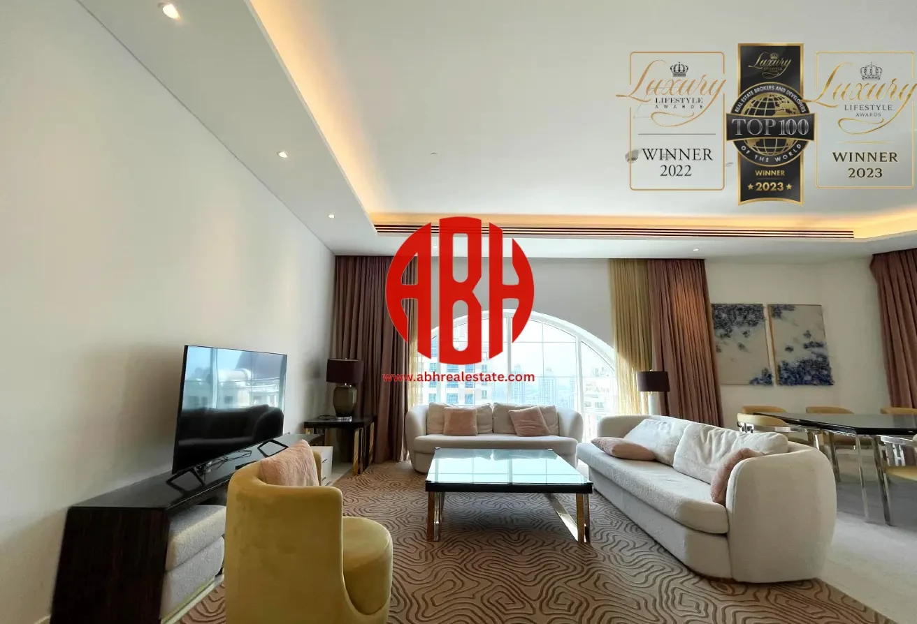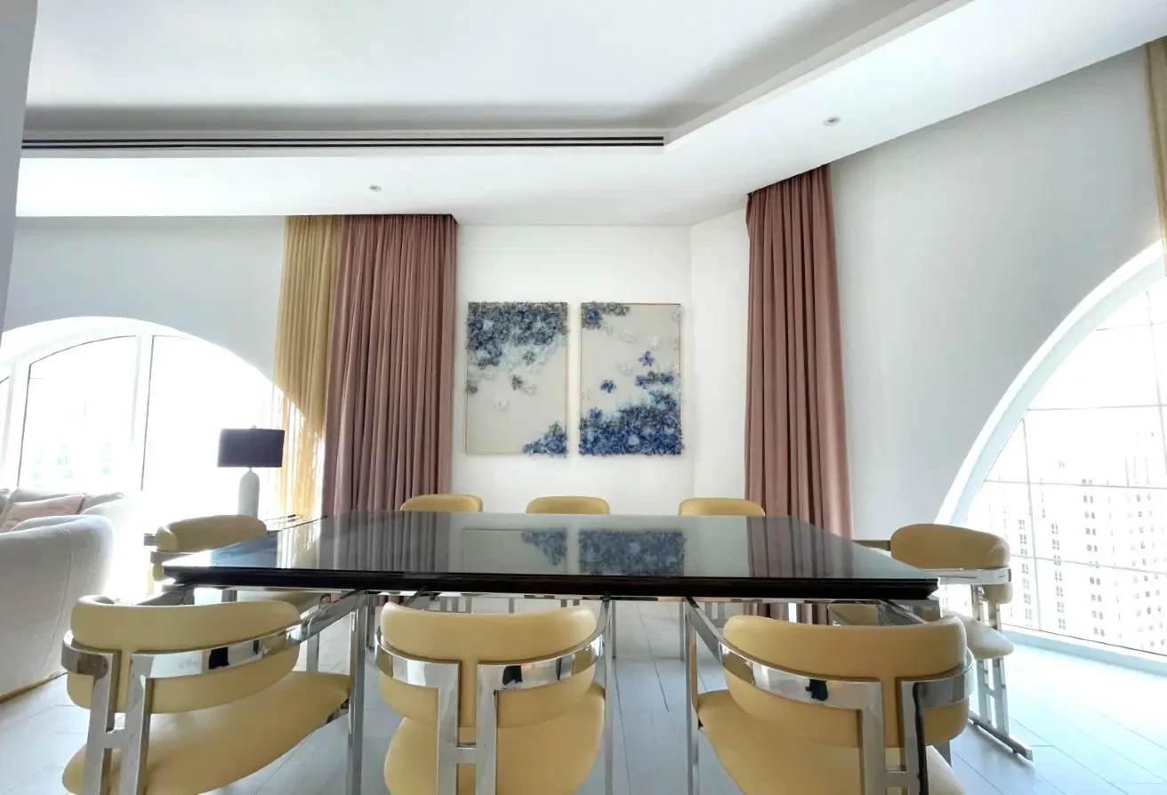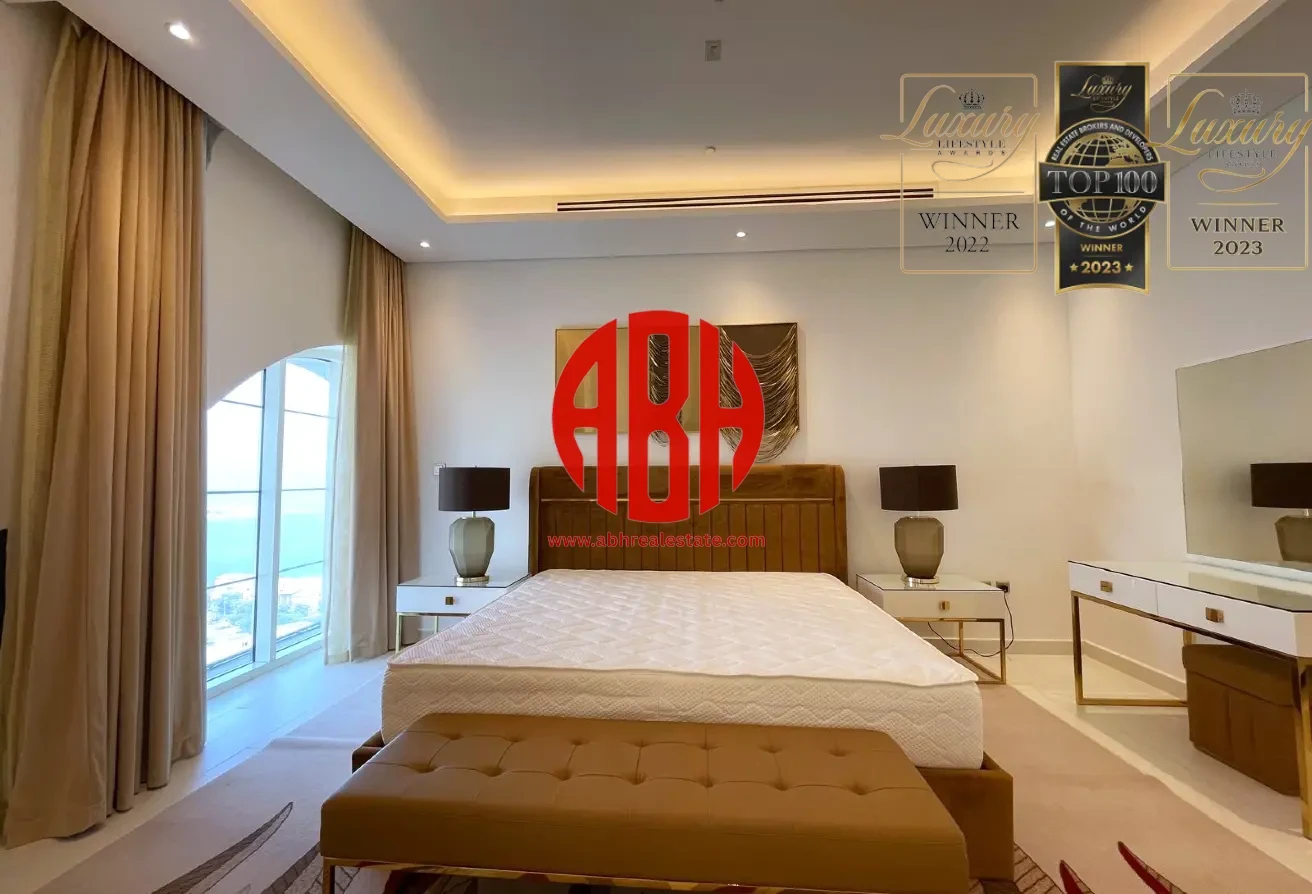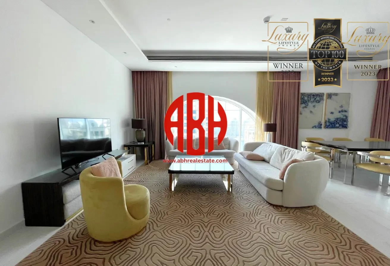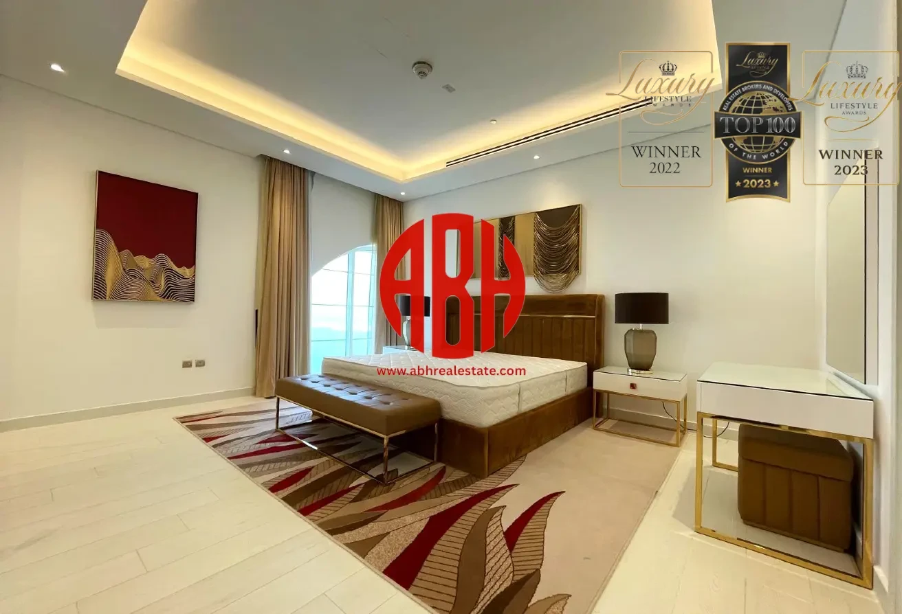 ABH Real Estate is delighted to offer you this exceptional and luxurious fully-furnished 3 bedrooms + maids Penthouse for rent in one of the best places in The Pearl island.