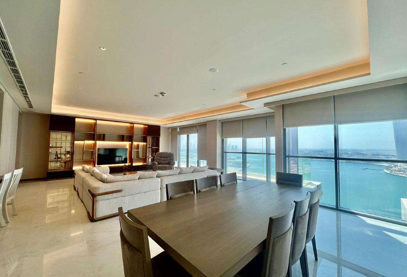 Experience the ultimate in luxury living with this stunning 3-bedroom plus maid’s apartment, fully furnished with high-end designer furniture and crafted for comfort and elegance. Every detail is designed to impress, from the spacious open-plan layout to the premium finishes and stylish décor that elevate the lifestyle you deserve. Floor-to-ceiling windows flood the apartment with natural light while offering a breathtaking, direct sea view you can enjoy every day.