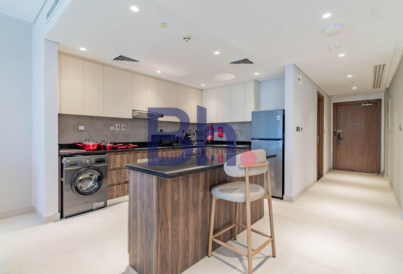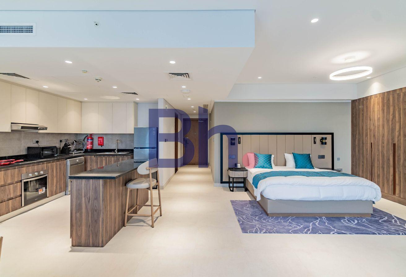 Modern studio at La Plage with open views across The Pearl.