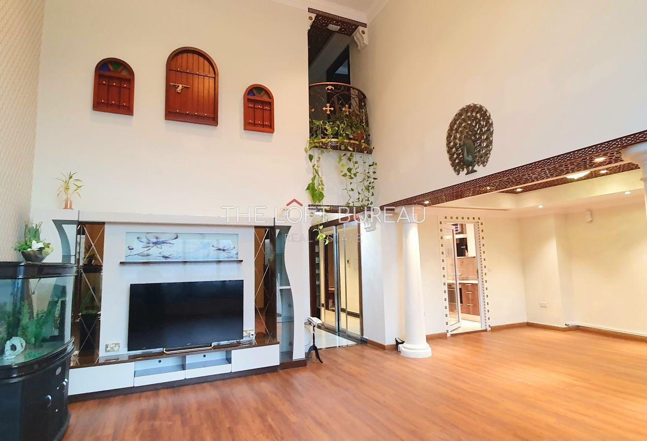 Spanning approximately 370 sqm, the thoughtfully designed layout includes a generous living and dining area, a closed kitchen, four well-appointed bedrooms, and a maid's room, providing ample space for families or professionals. The expansive terrace is perfect for outdoor relaxation or entertaining guests.
