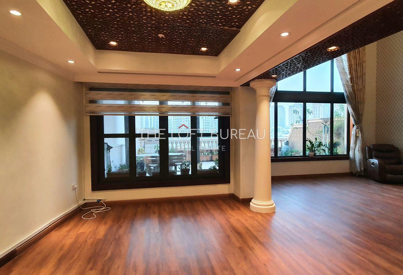 Discover upscale living in this elegant 4-bedroom townhouse, nestled in the heart of Porto Arabia, The Pearl-Qatar. Priced at QAR 18,000 per month for semi furnished option. This residence offers panoramic marina views, a spacious terrace, and soaring ceilings that enhance its airy ambiance.