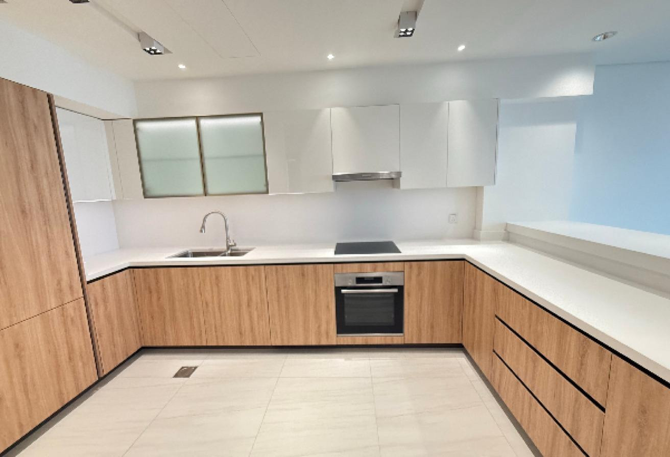- Kitchen includes build-in fridge, cooker, stove, microwave, hood