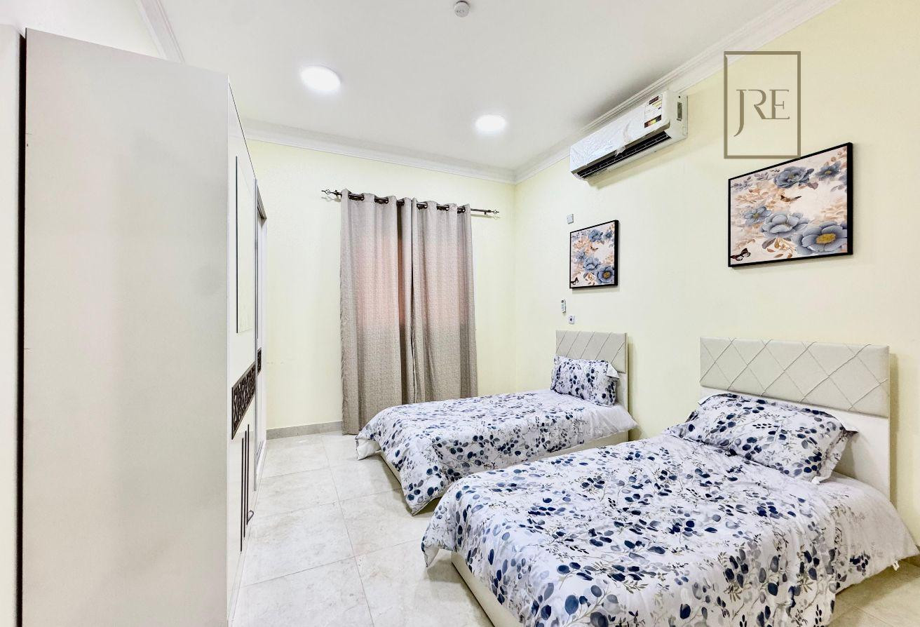 New compound, completed in 2023. Fully furnished and air-conditioned. Large spaces, parking, and excellent side and rear areas. Very close to the North Road and Al-Wusail.
