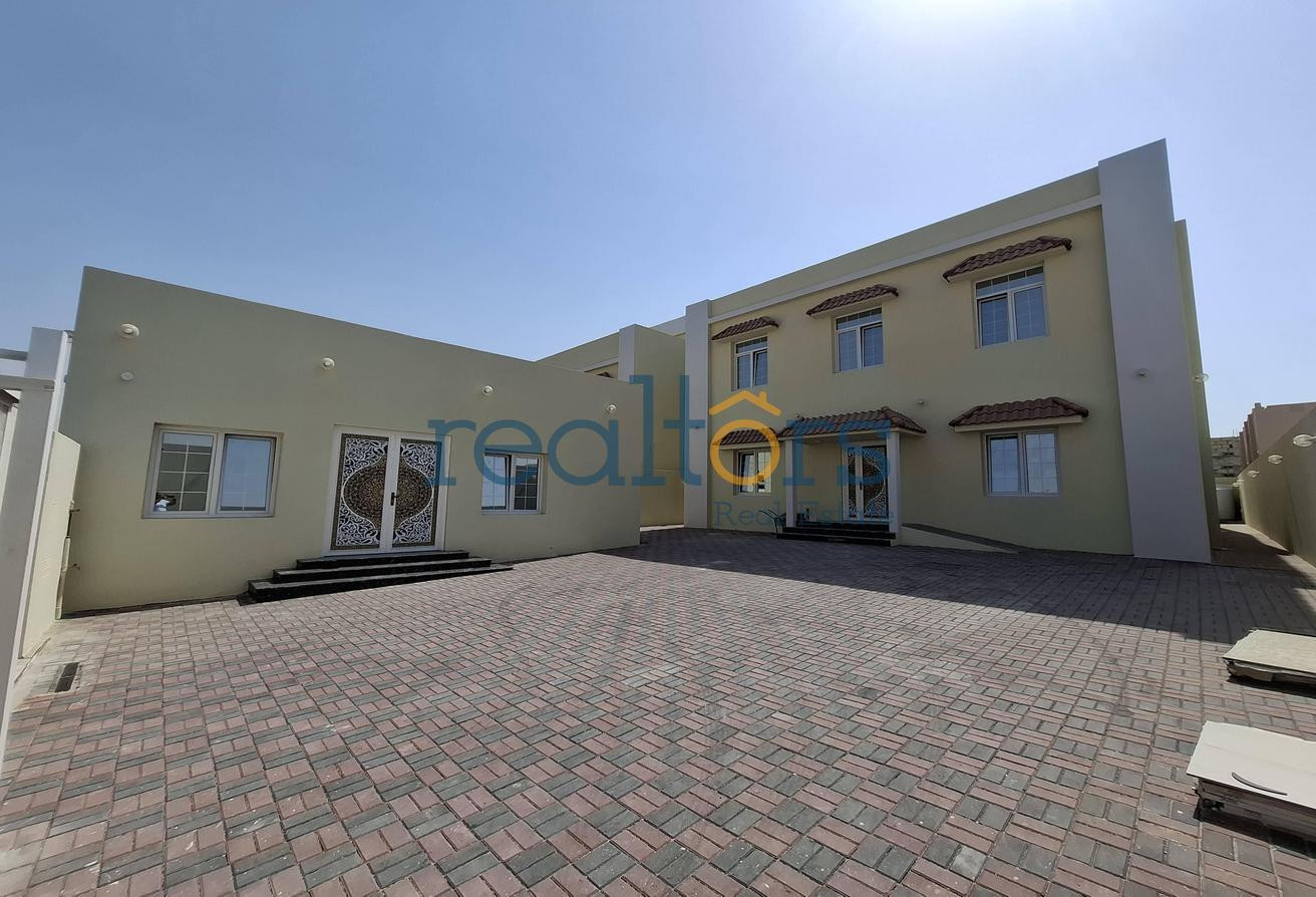 Discover this beautifully maintained Standalone villa featuring a large open courtyard, perfect for gatherings and outdoor activities. The property includes a main two-story residence with elegant decorative doors and a separate outside majlis with Toilet offering privacy and versatility for family or entertainment use.