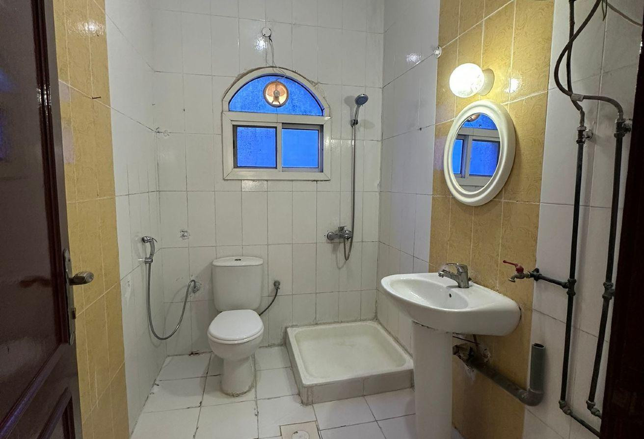Large room and living room with kitchen and bathroom, including split AC units, brick construction, in Izghawa, ground floor, annex behind the villa, 3500 QAR with private yard, furnished, 3900 QAR