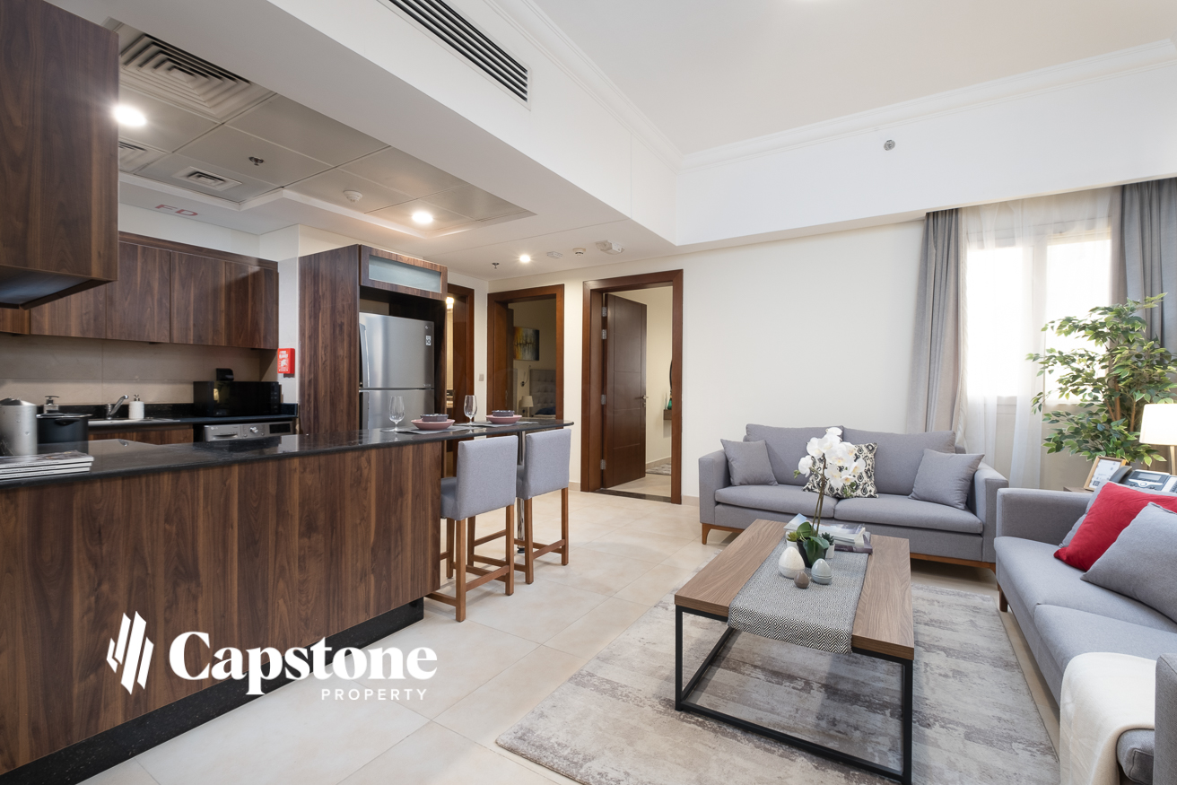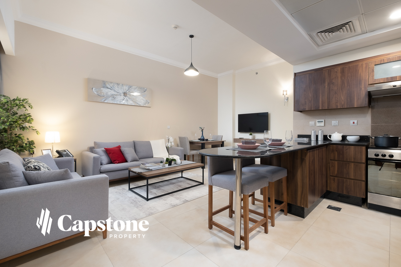 Fully-furnished two-bedroom apartments for rent. Unique property services. Equipped with high quality furniture and appliances. This property is 5 mins away from Al Meera - Mansoura and with quick access to C-ring Road.
