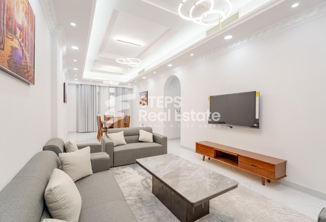 This brand-new, fully furnished luxury two-bedroom apartment for rent in Al Waab delivers a modern living experience designed for comfort, style, and convenience. From the moment you walk inside, the clean finishes and thoughtfully arranged layout create an inviting atmosphere that feels both elegant and easy to settle into. Whether you’re new to the area or searching for an upscale apartment for rent in Qatar, this home stands out as a refined option in one of Doha’s most desirable districts.