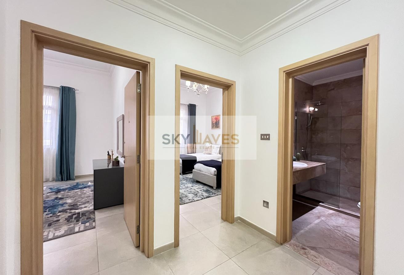 Sky Waves Real Estate is delighted to present this stylish and fully furnished 2-bedroom apartment located in a secure and serene residential compound in Al Waab, just minutes away from Aspire Zone. This modern home offers a harmonious balance of comfort, design, and accessibility in one of Doha’s most desirable neighborhoods.