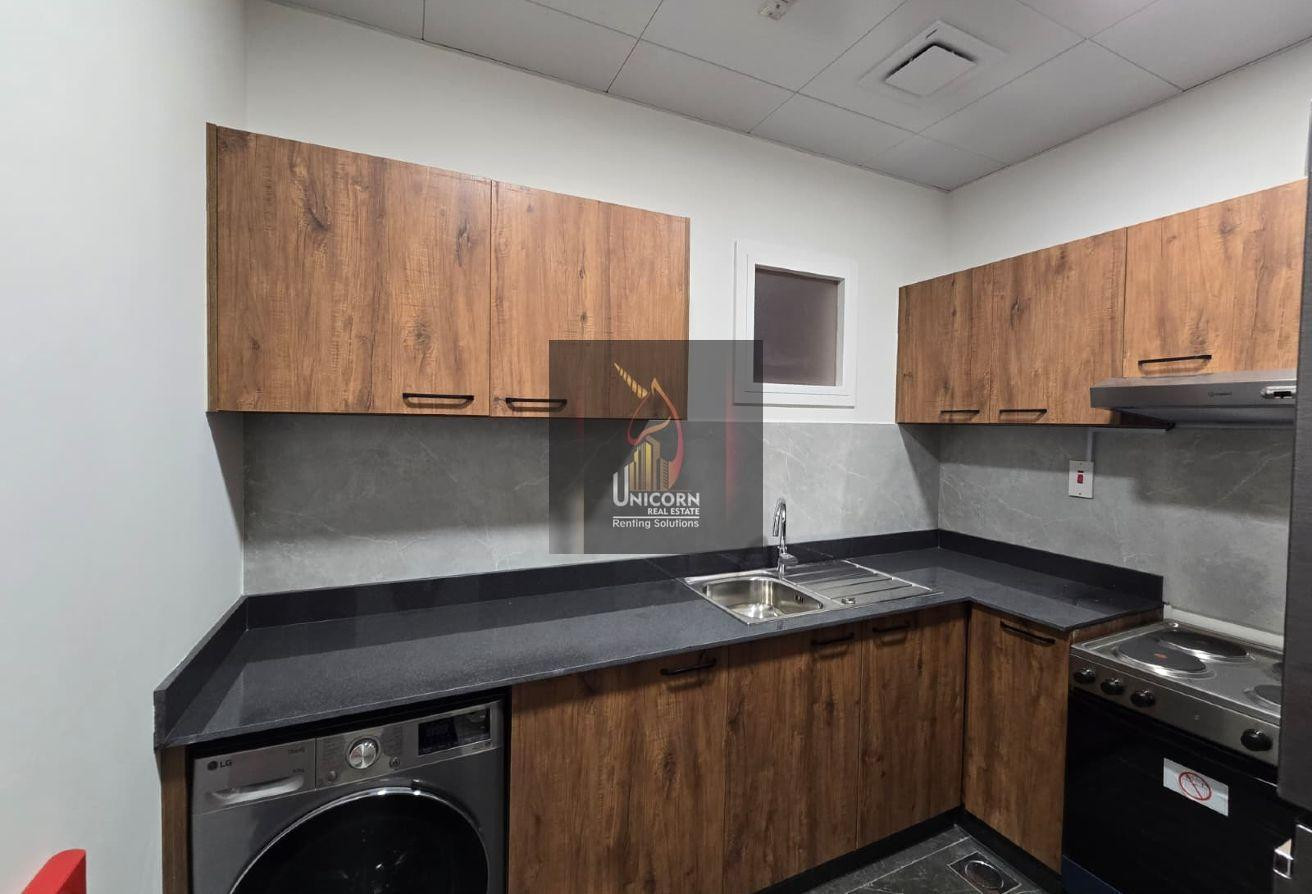 The apartment features a good-sized living space, perfect for relaxation. The modern, closed kitchen is thoughtfully designed with high-quality fixtures and modern appliances, ideal for cooking enthusiasts.