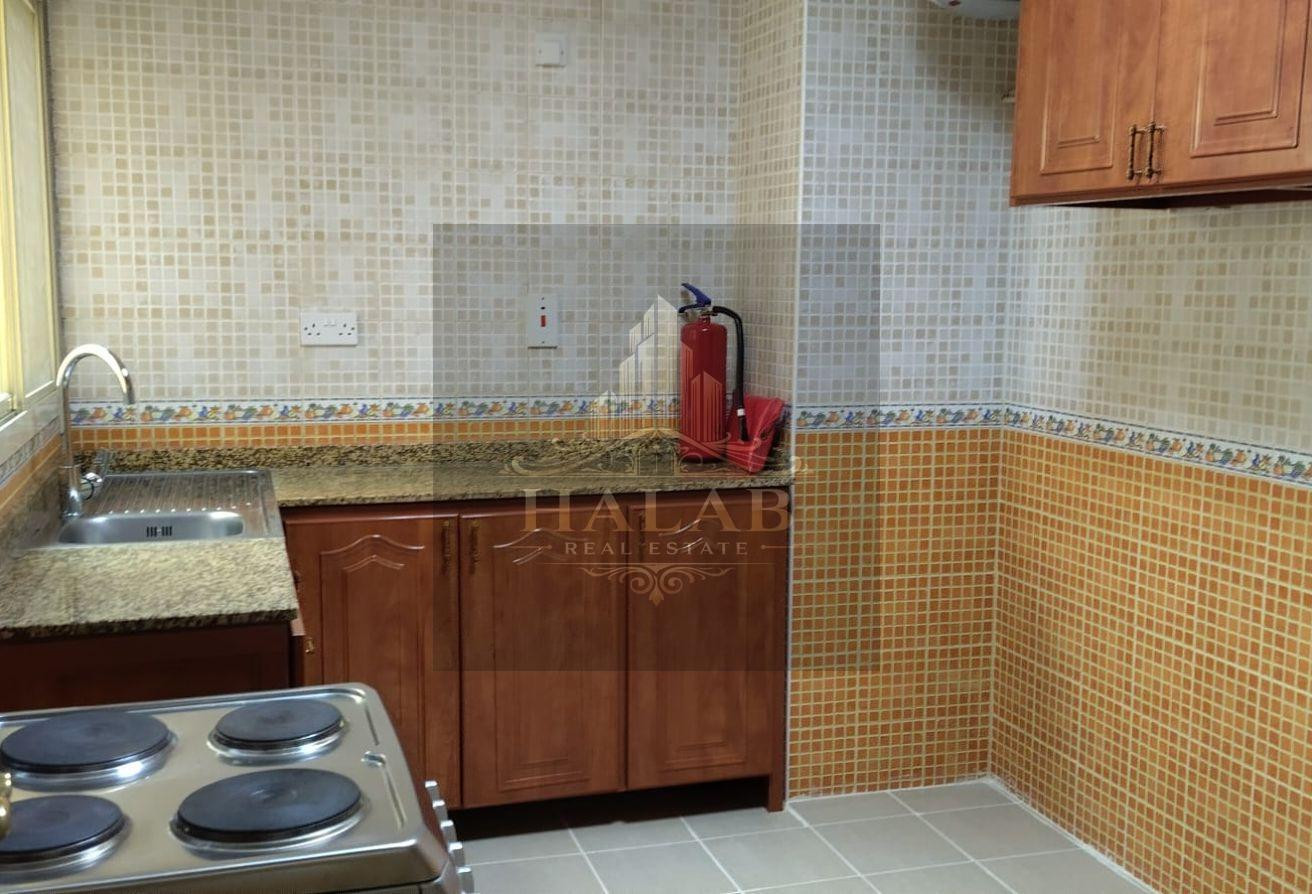 Fully furnished one-bedroom and living room, standard brick construction, with separate kitchen and bathroom, including split AC, in Al Kharaitiyat, inside a villa, 3300 QAR, unfurnished, 2800 QAR, first floor, front entrance, opposite