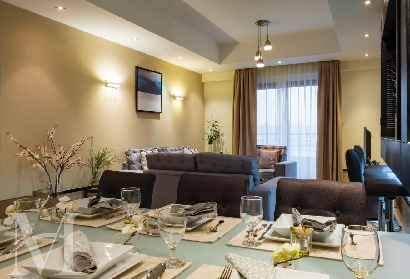 Le Mirage Executive is strategically situated in the placid community of Doha. It has a unique architecture in high-quality interiors with choices of furnished flats, along with two and three-bedroom apartments. The Furniture is thoughtfully chosen, such as the living room furniture that transforms the living area into a Cozy bedroom for overnight staying visitors.