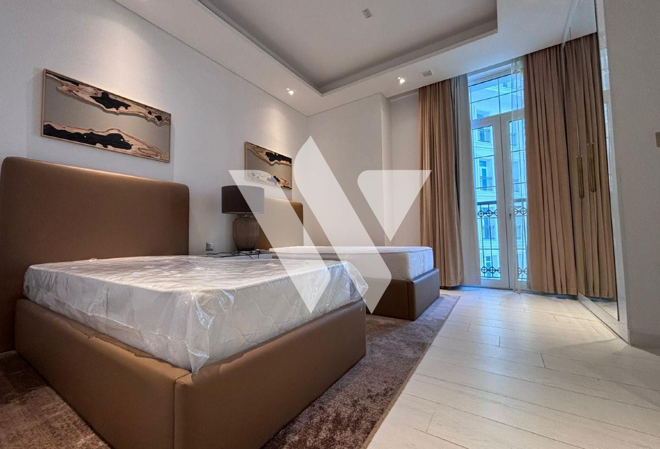 Fully furnished 2BHK apartment in Floresta Gardens featuring a modern living area, equipped kitchen, two comfortable bedrooms, and a private balcony with peaceful views. Located in a quiet upscale community at The Pearl, close to beaches, cafés, and shopping.