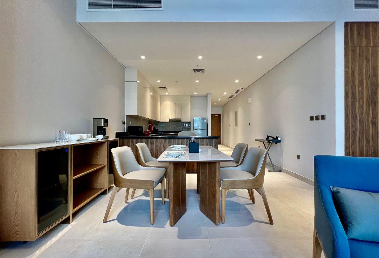 Located in the heart of La Plage, you’ll have direct access to Doha’s vibrant lifestyle, with cafes, fine dining, and leisure destinations all within walking distance. The apartment combines luxury living with practicality, providing an unmatched coastal experience.