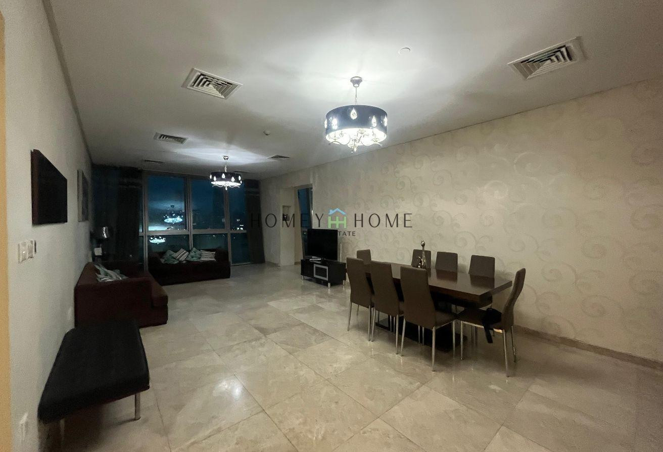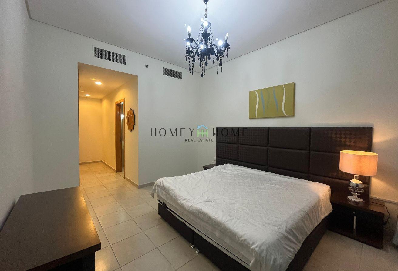This apartment is counted as an excellent Fully Furnished 3 bedrooms + maid with The Pearl view.