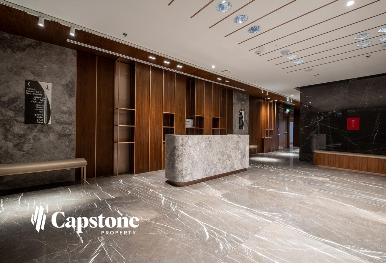 Spacious apartments for rent in West Bay, featuring stunning views of the city skyline and the sea.