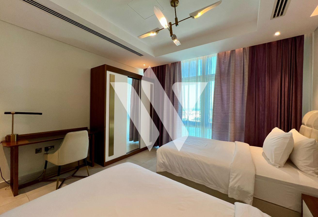 Discover luxurious coastal living in this elegantly furnished 2 BHK apartment in the sought-after Waterfront District of Lusail. This spacious residence combines modern design with comfort, featuring a bright open-plan living and dining area adorned with stylish furnishings and large windows that fill the space with natural light. The fully equipped kitchen comes with high-end appliances and sleek cabinetry, perfect for everyday living or entertaining guests. Both bedrooms are generously sized, offering built-in wardrobes and en-suite bathrooms designed with premium finishes. Step out onto the private balcony to enjoy breathtaking views of the marina and Lusail’s vibrant skyline. Residents benefit from top-tier amenities such as a swimming pool, fitness center, concierge services, and secure parking. Ideally located near Lusail Marina, restaurants, shops, and entertainment hubs, this apartment offers the perfect balance of luxury, convenience, and waterfront serenity ready to welcome your home.