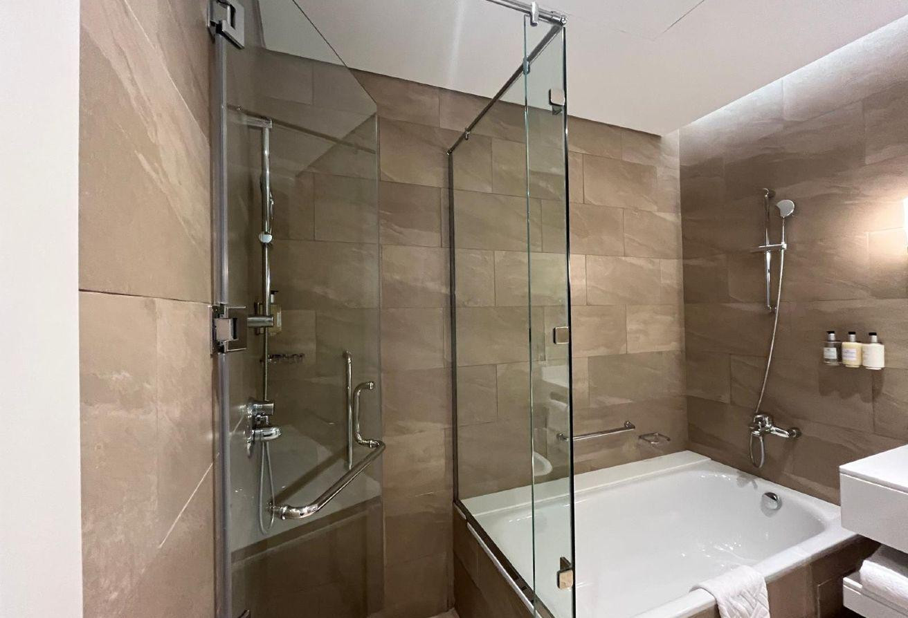 It boasts modern furniture, a spacious living and dining area, and open kitchen. It features a generously sized bedroom with built-in wardrobes and large windows, ensuring ample natural light and stunning views. As a hotel apartment, you can expect top-notch service and amenities.
