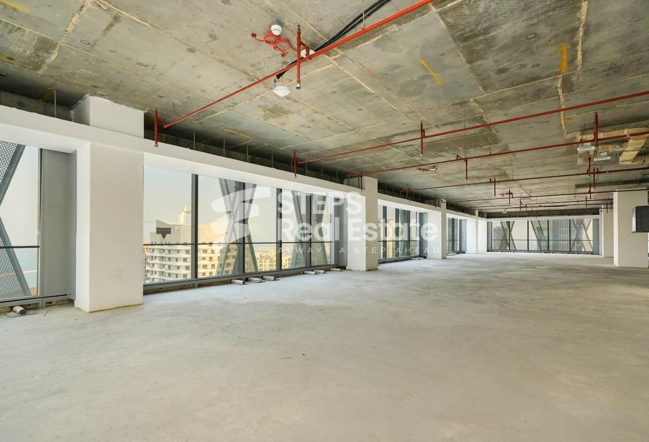 This shell-and-core office provides a generous open space layout, giving businesses complete freedom to design and customize the interior according to their operational needs. Whether you envision private offices, collaborative areas, meeting rooms, or a tailored layout for your corporate identity, the flexible structure allows you to create a workspace that aligns with your brand. Floor-to-ceiling windows bring in natural light and offer impressive city views, enhancing the overall work environment.