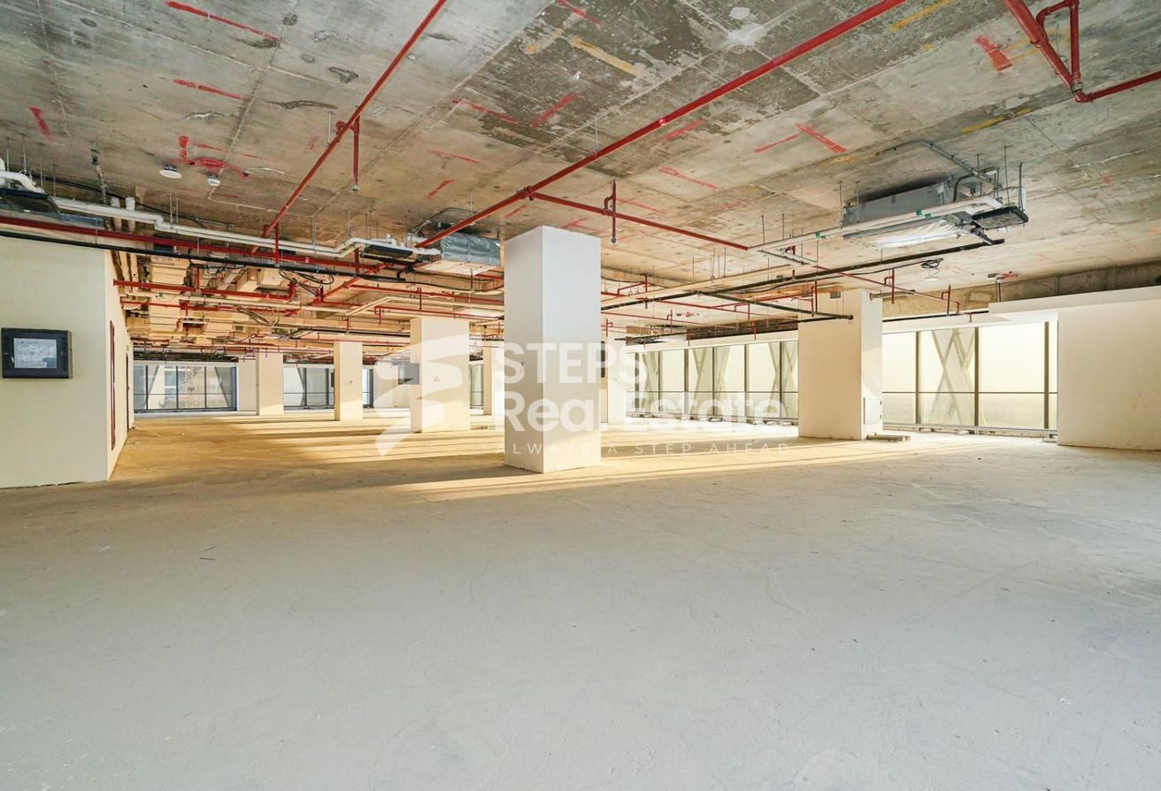 This shell-and-core office provides a generous open space layout, giving businesses complete freedom to design and customize the interior according to their operational needs. Whether you envision private offices, collaborative areas, meeting rooms, or a tailored layout for your corporate identity, the flexible structure allows you to create a workspace that aligns with your brand. Floor-to-ceiling windows bring in natural light and offer impressive city views, enhancing the overall work environment.