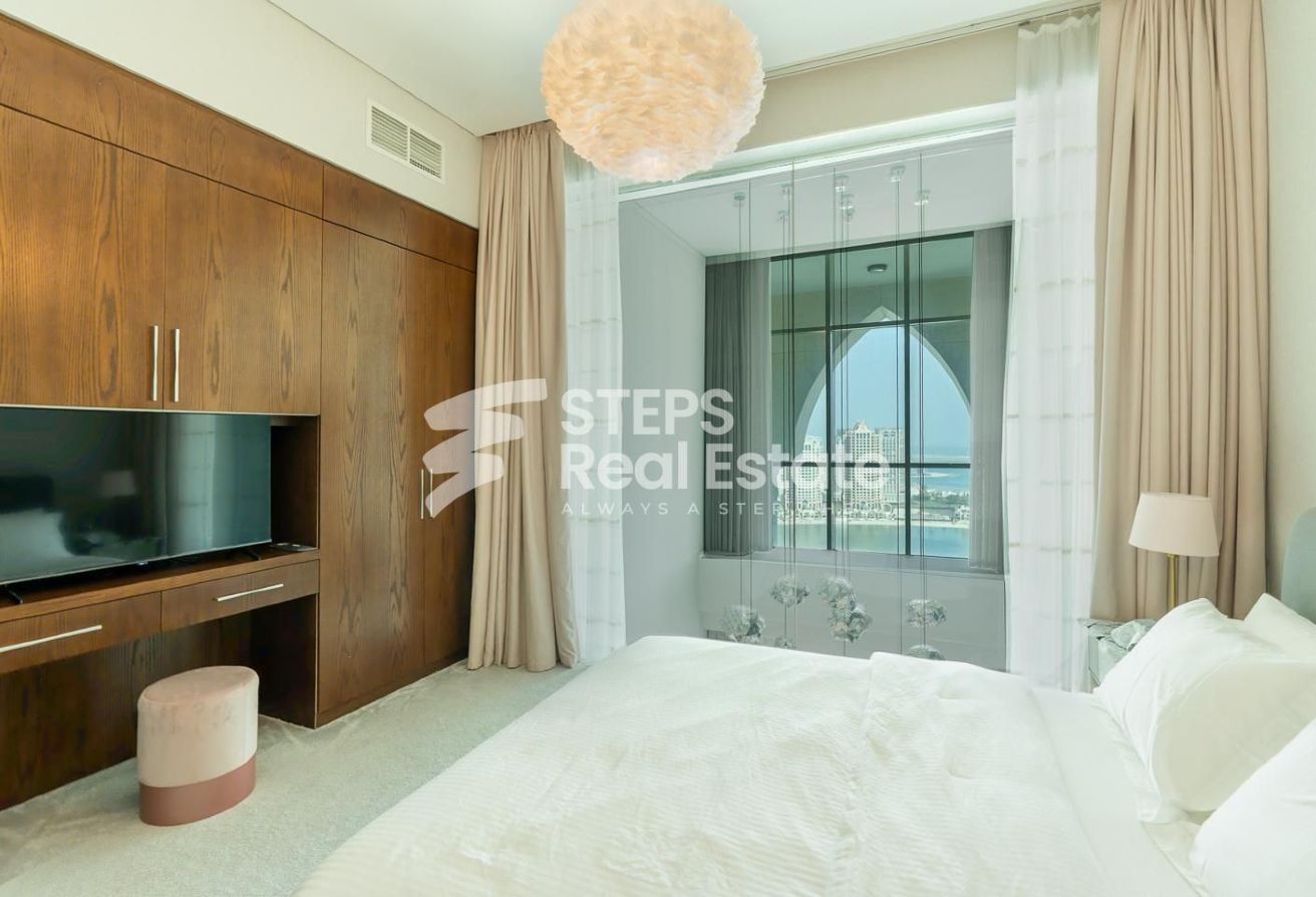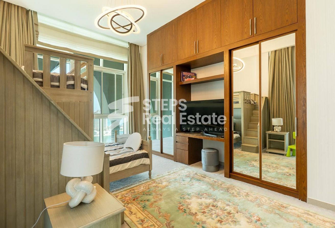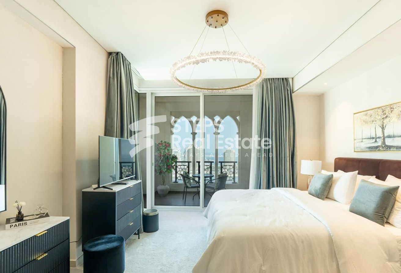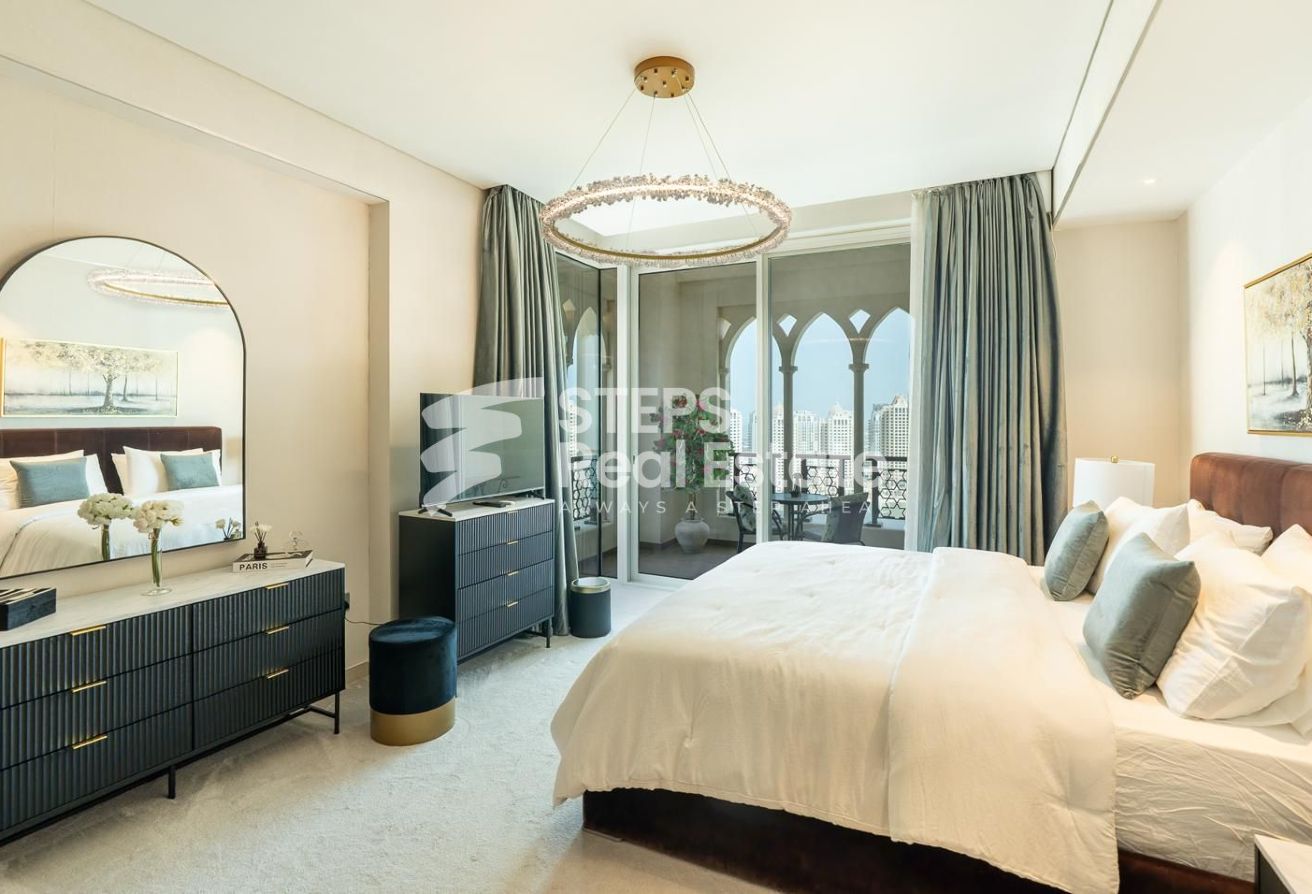 Live above it all in this stunning 3-bedroom duplex penthouse, offered as an exclusive apartment for rent in The Pearl. Fully furnished with high-end interiors, it boasts breathtaking sea views, spacious balconies, direct beach access, and a dedicated maid’s room — blending privacy, comfort, and sophistication.