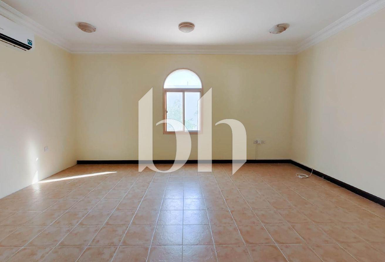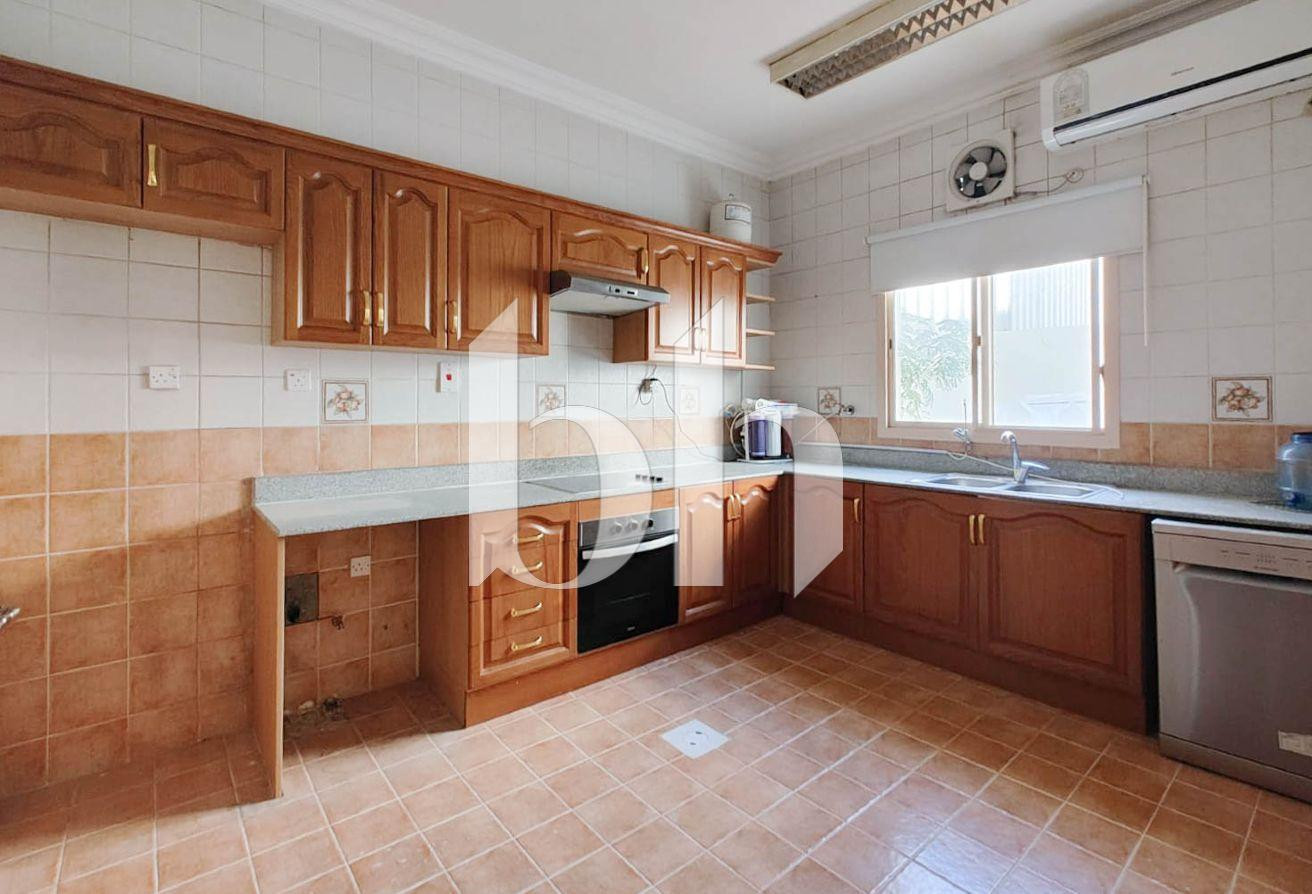 This semi furnished compound villa offers three bedrooms with practical layouts and balanced space. The property includes a closed kitchen modern fittings and built in storage. The compound setting provides controlled access shared amenities and a structured living environment suited for families.