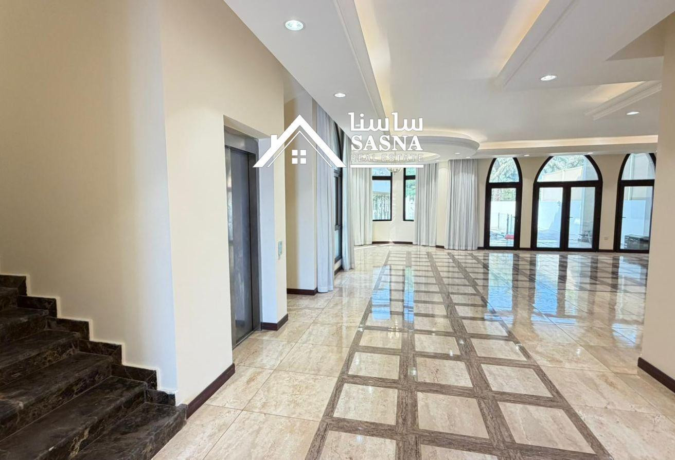 An exceptional villa offering all the essentials of upscale living, featuring a private pool, 6 master bedrooms, a lift, a driver, and a maid's room. The villa also includes an elegant outdoor majlis and a storage room.