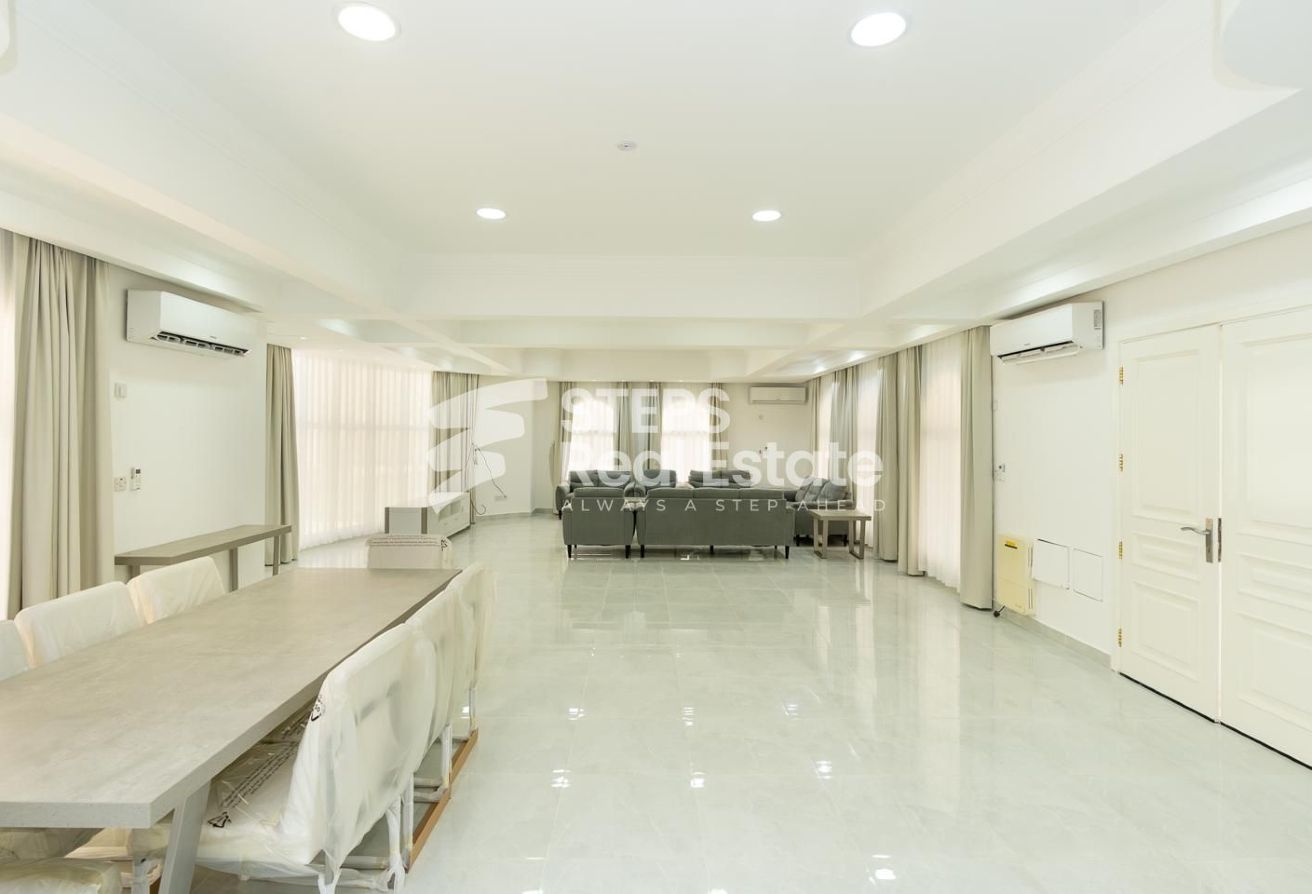 Step into unmatched luxury and coastal living with this large furnished villa for rent in Legtaifiya, one of Doha’s most prestigious and serene residential areas. Boasting 5 spacious bedrooms, a maid’s room, private balconies, and breathtaking sea views, this is more than a home—it’s a lifestyle upgrade.