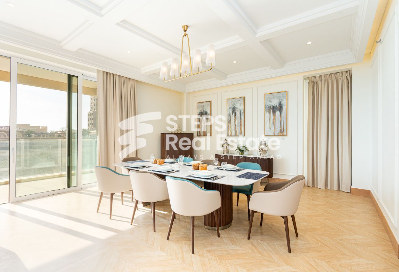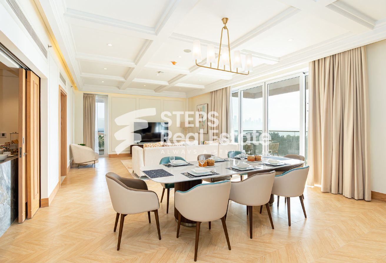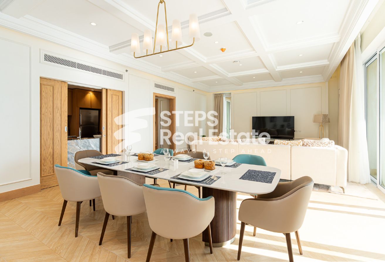 Introducing an almost ready, semi-furnished apartment in Porto Arabia, The Pearl Island—one of Qatar’s most vibrant waterfront communities. This off-plan residential property offers 289.65 sqm of well-designed living space, creating an ideal setting for home buyers seeking a balance of luxury, comfort, and convenience. Enjoy panoramic sea and city views from your private balcony, and experience spacious living with an open kitchen, bright living area, and dedicated dining room—perfect for family gatherings or entertaining guests. The apartment features three master bedrooms with en-suite bathrooms and a walk-in closet, as well as a maid’s room and guest toilet, complementing the thoughtful layout and providing both privacy and practicality.