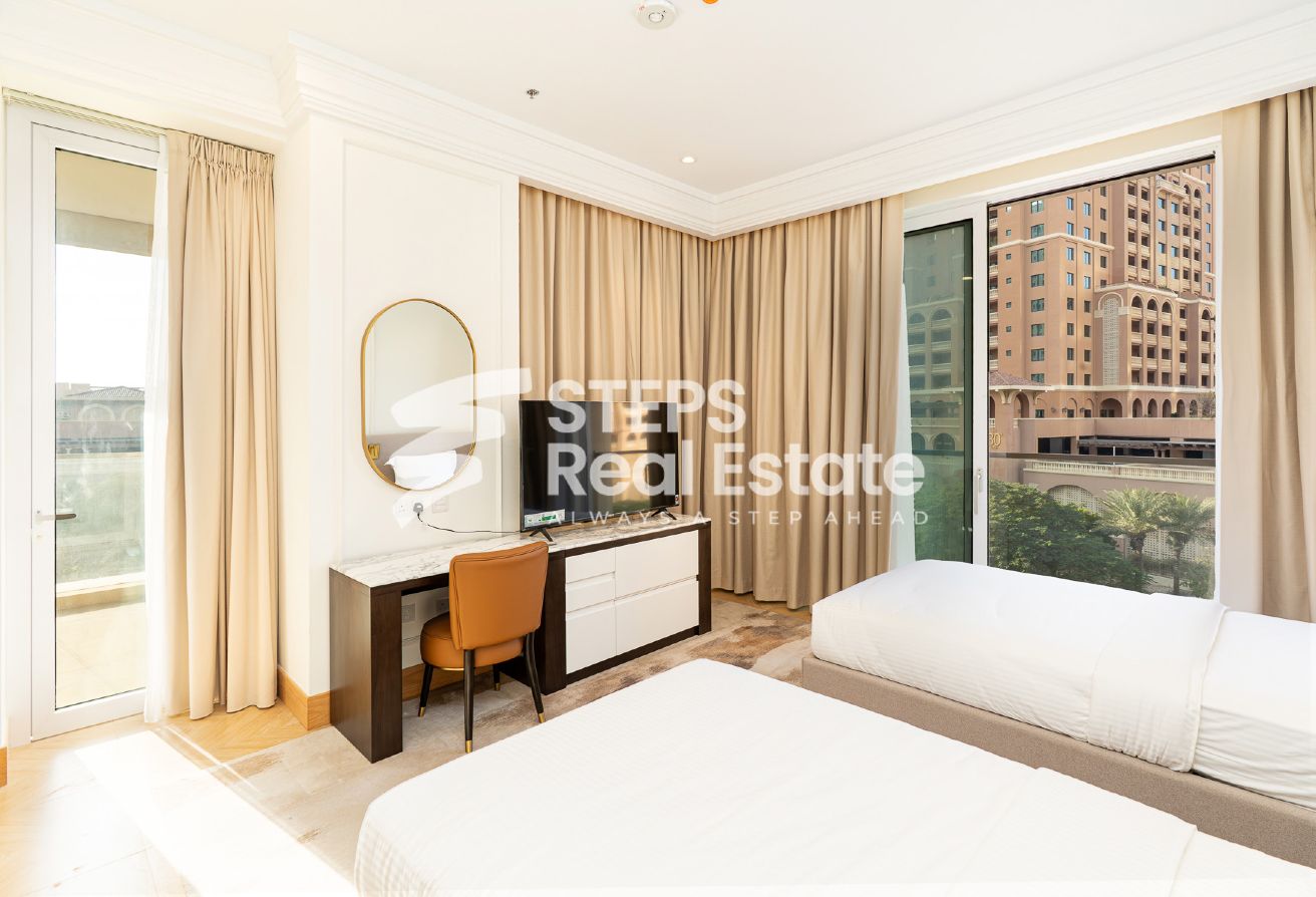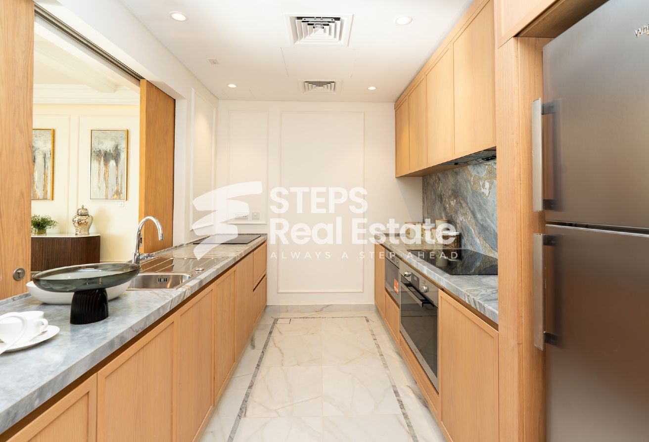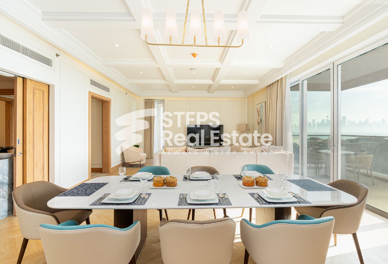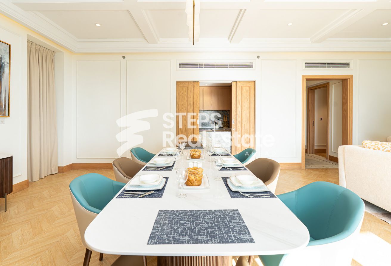 Introducing an almost ready, semi-furnished apartment in Porto Arabia, The Pearl Island—one of Qatar’s most vibrant waterfront communities. This off-plan residential property offers 289.65 sqm of well-designed living space, creating an ideal setting for home buyers seeking a balance of luxury, comfort, and convenience. Enjoy panoramic sea and city views from your private balcony, and experience spacious living with an open kitchen, bright living area, and dedicated dining room—perfect for family gatherings or entertaining guests. The apartment features three master bedrooms with en-suite bathrooms and a walk-in closet, as well as a maid’s room and guest toilet, complementing the thoughtful layout and providing both privacy and practicality.