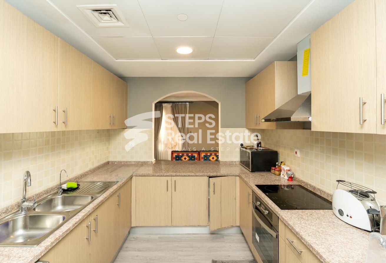 This fully furnished two-bedroom apartment for sale in The Pearl offers a stylish and comfortable living experience in one of Doha’s most desirable waterfront communities. From the moment you step inside, the apartment feels welcoming, with its modern furniture, warm finishes, and a layout designed for both relaxation and convenience.