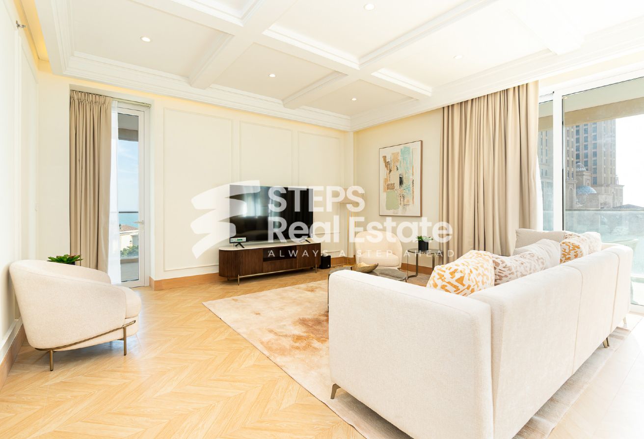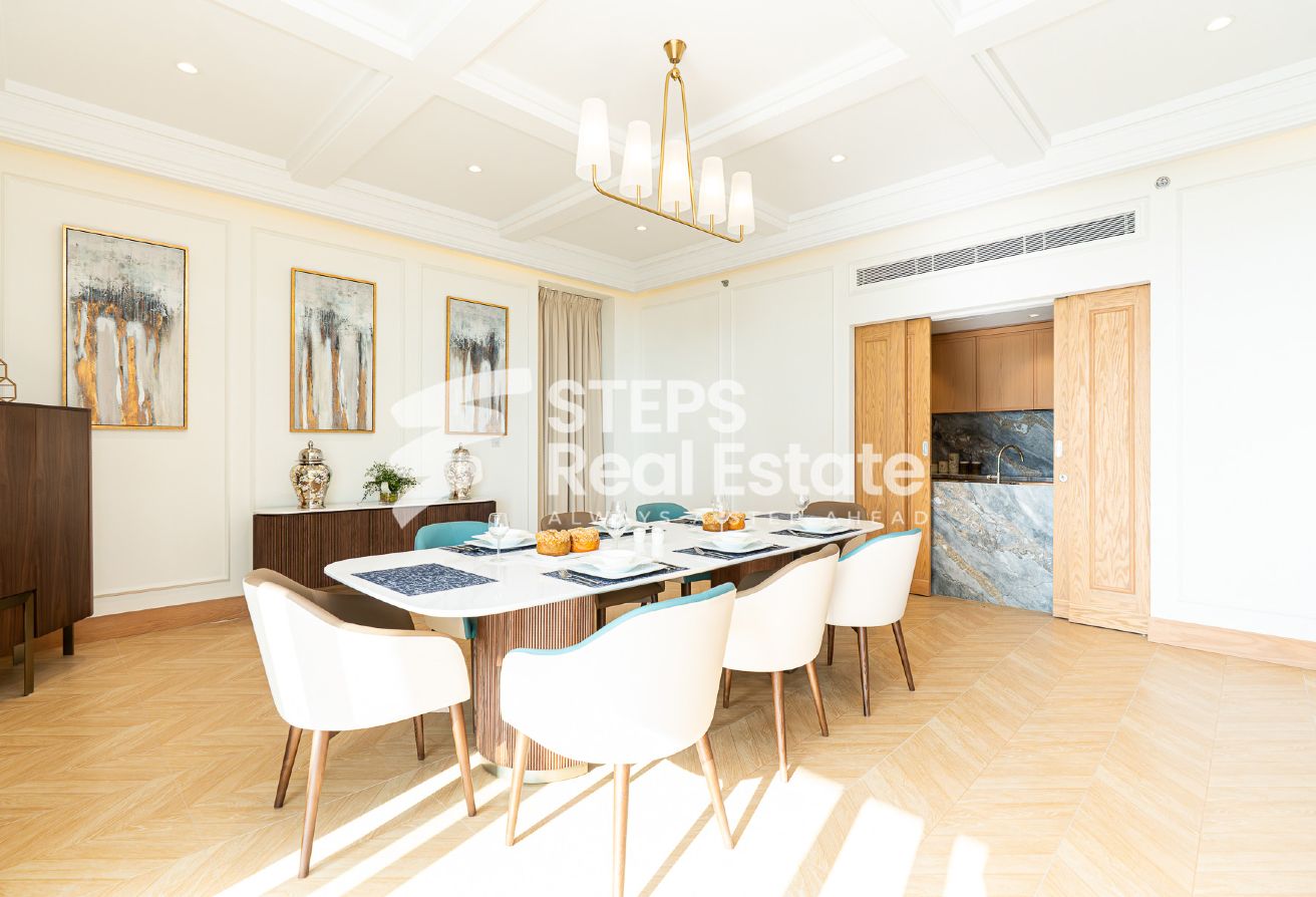 Introducing an almost ready, semi-furnished apartment in Porto Arabia, The Pearl Island—one of Qatar’s most vibrant waterfront communities. This off-plan residential property offers 289.65 sqm of well-designed living space, creating an ideal setting for home buyers seeking a balance of luxury, comfort, and convenience. Enjoy panoramic sea and city views from your private balcony, and experience spacious living with an open kitchen, bright living area, and dedicated dining room—perfect for family gatherings or entertaining guests. The apartment features three master bedrooms with en-suite bathrooms and a walk-in closet, as well as a maid’s room and guest toilet, complementing the thoughtful layout and providing both privacy and practicality.