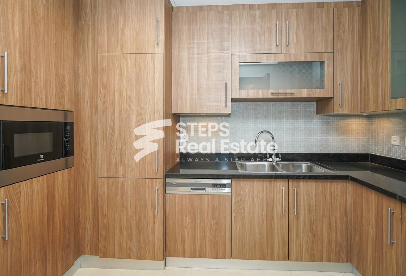 Steps Real Estate presents a one-of-a-kind 2-bedroom apartment for sale with exquisite finishes and furnishings; a unique place offering charming views of the sea and the Pearl city that will make your living experience unforgettable!