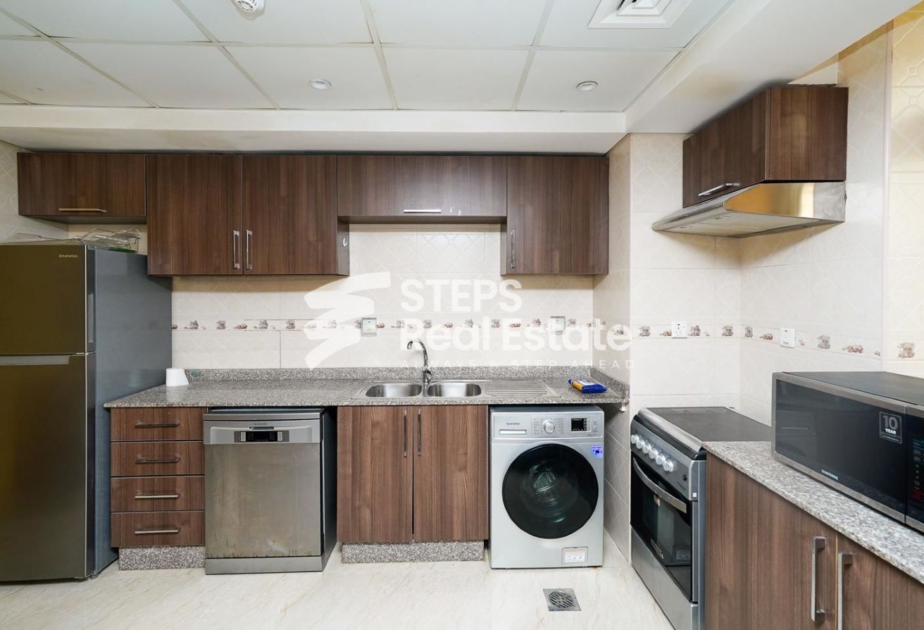 Once you step inside this modern 2-bedroom apartment in a highly refined area in Lusail, Fox Hills, you'll find a harmonious blend of sophistication and luxury, complemented by captivating views of the city.