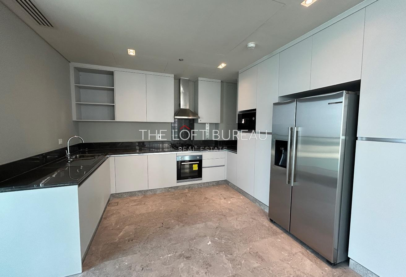 The apartment features three spacious bedrooms, a maid’s room, 3.5 bathrooms, and a bright open-plan living area with large windows that capture stunning sea views. Residents will also enjoy 2 allocated parking spaces and access to premium facilities including a swimming pool, fitness center, landscaped areas, and 24/7 security.