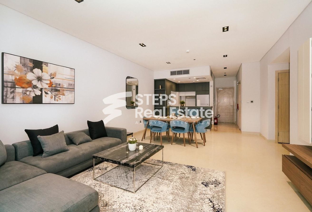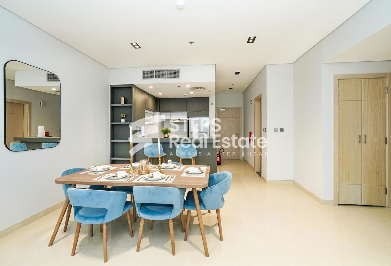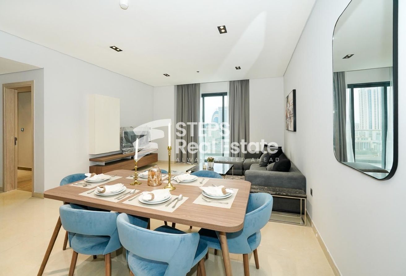 This furnished 2-bedroom apartment is the epitome of modern living. Located in a desirable location in Lusail Marina, this unit offers a spacious and well-appointed living space that is perfect for a small family or professionals looking for a stylish home.
