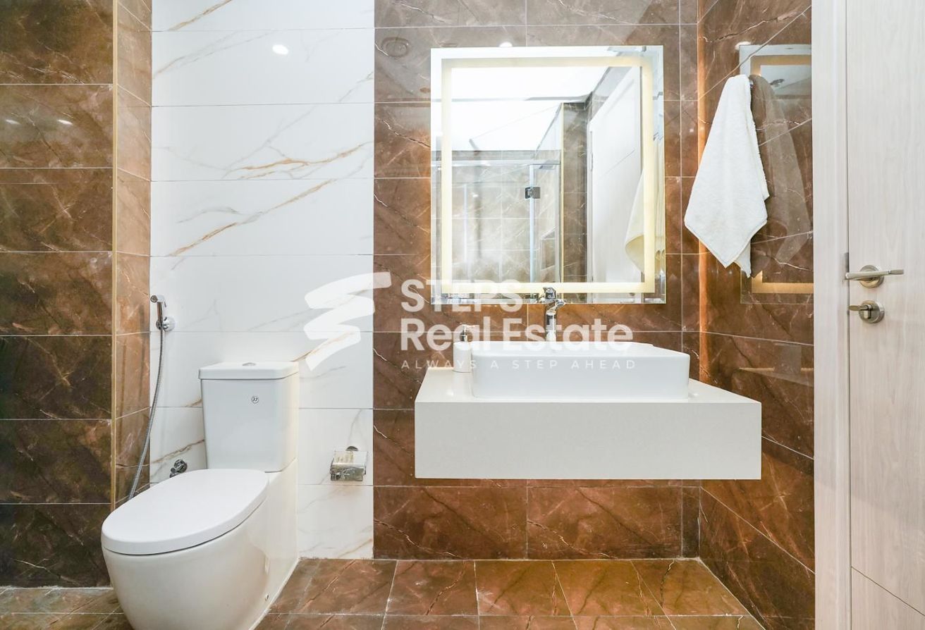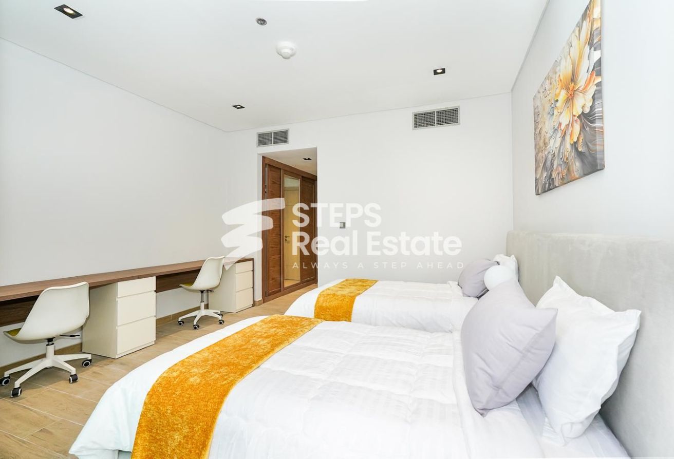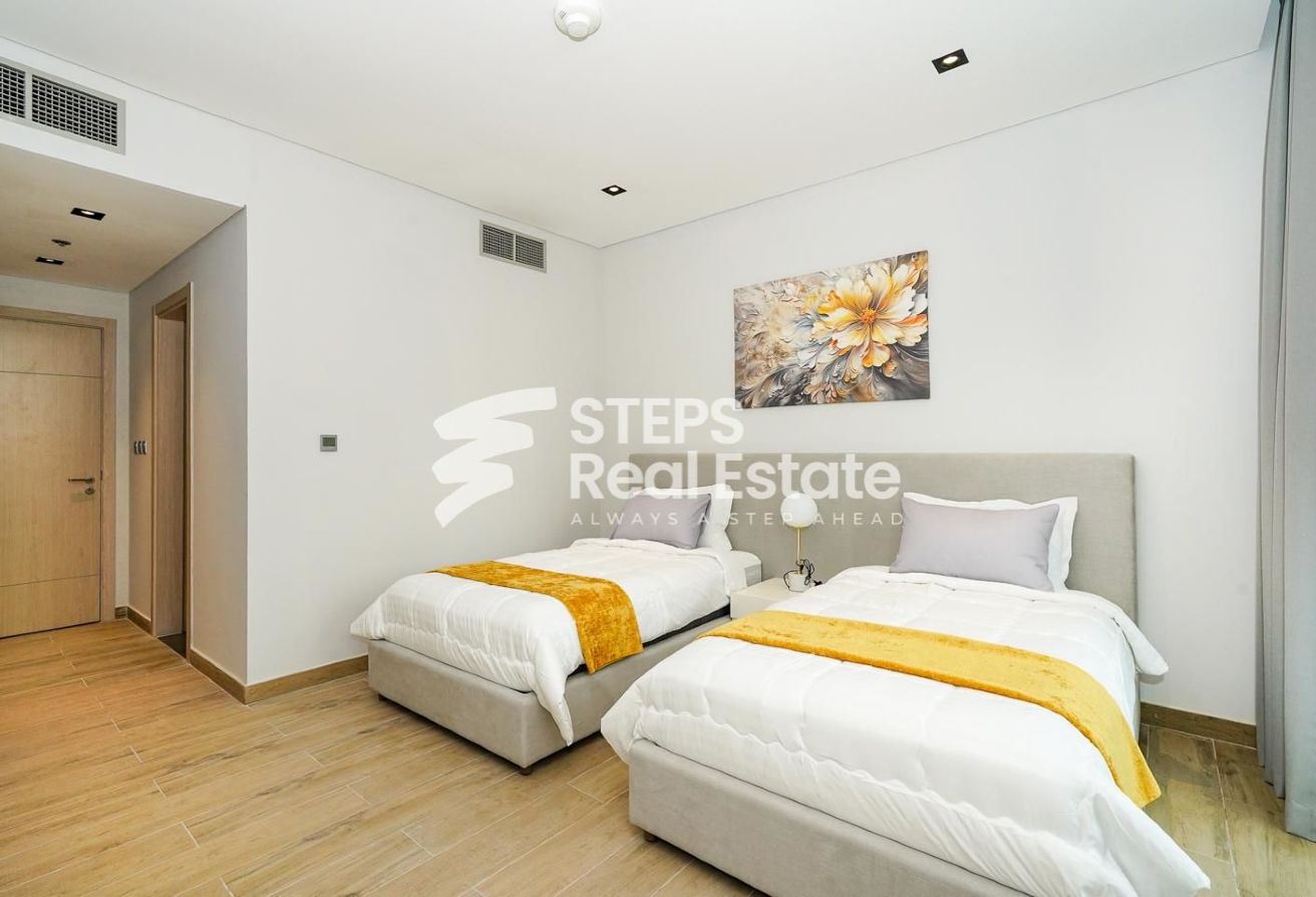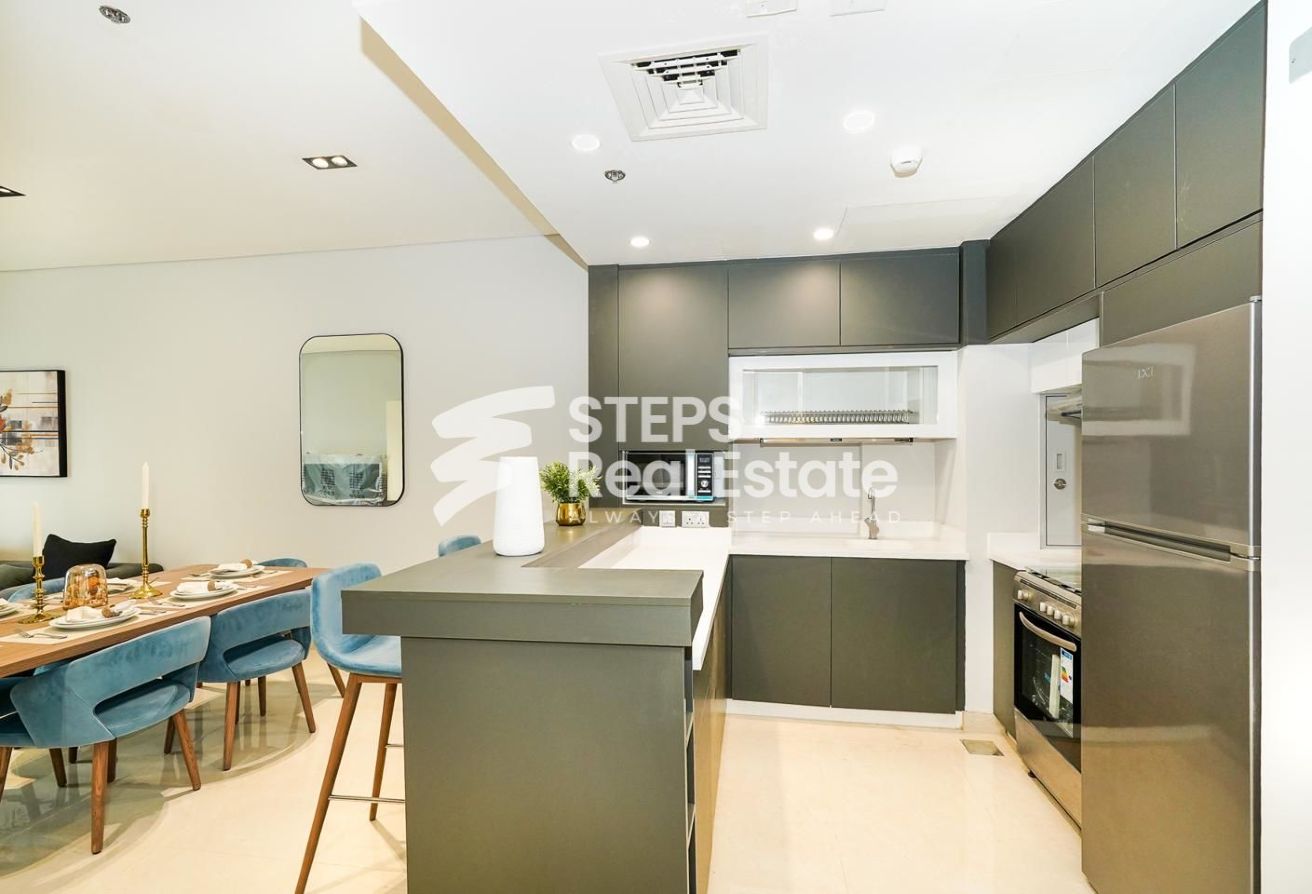 This furnished 2-bedroom apartment is the epitome of modern living. Located in a desirable location in Lusail Marina, this unit offers a spacious and well-appointed living space that is perfect for a small family or professionals looking for a stylish home.