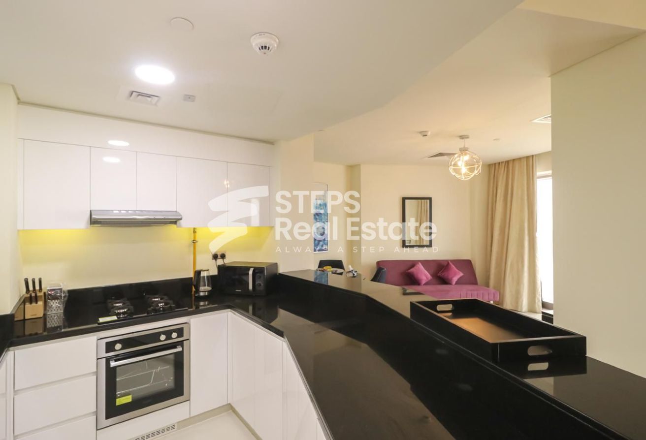 Luxurious 1 BHK fully furnished apartment for sale in Damac Waterfront, Lusail. Enjoy stunning sea views and a dedicated office space, perfect for work and relaxation. A smart investment with high rental potential in a prime location. Don't miss this economic opportunity!