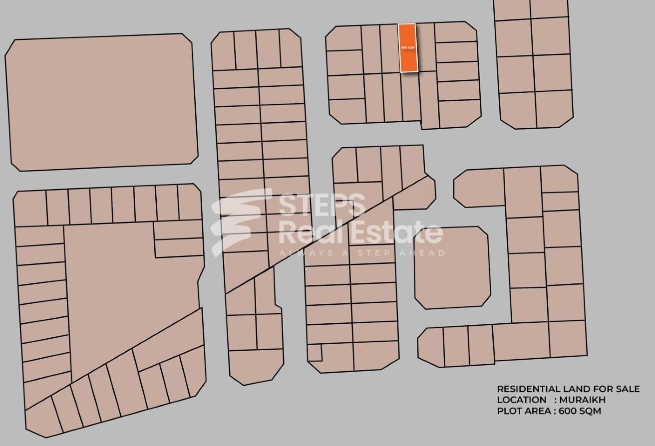 Experience a rare opportunity to secure your future with this residential plot, licensed for villa development, in the desirable Al Muraikh area of Al Rayyan. Perfectly positioned for long-term investment, this 600 SQM land parcel offers a competitive price and stands out as a solid foundation for realising your vision. Located within a sought-after community, the plot benefits from its prime location, allowing you to build a home tailored to your needs or set the stage for strong capital appreciation. Take advantage of the neighbourhood’s high demand and excellent connectivity, adding value for those seeking a blend of comfort and smart investment potential.