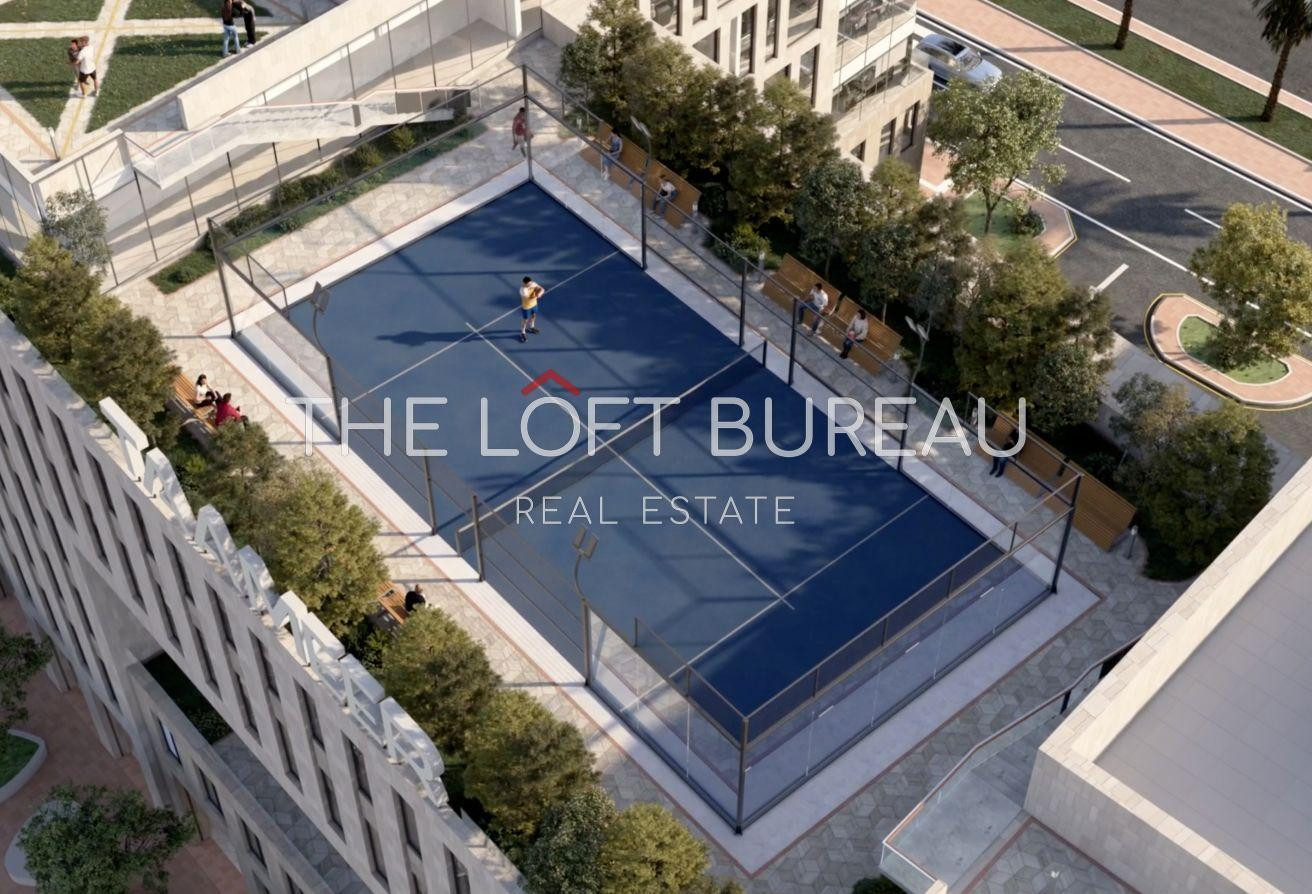 * The padel court at Business Park offers a dynamic space for employees and visitors to unwind, stay active, and socialize.