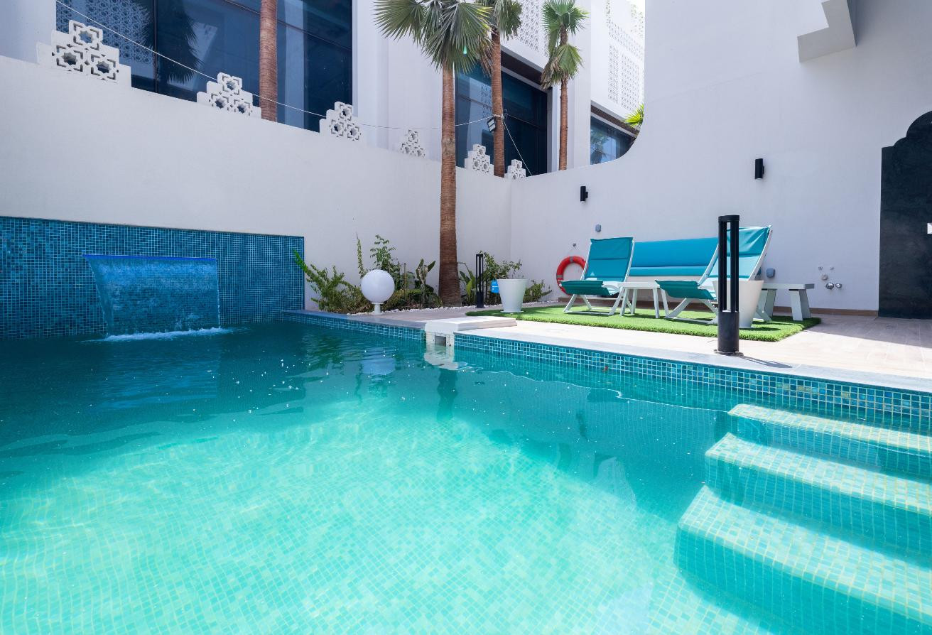 - Garden with your own private swimming pool and BBQ area