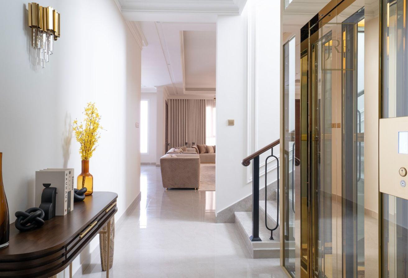 • Ground Floor: Cozy Living Room, Traditional Majlis, Spacious Master Bedroom, Fully Equipped Kitchen, Modern Bathroom, and Lift